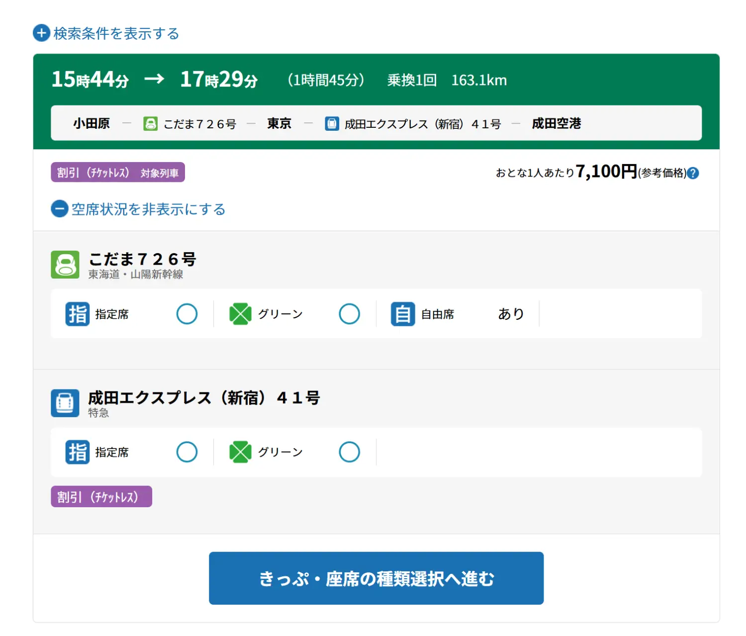 所以將紙本乘車券分開買比直接買小田原---成田機場第一航廈便宜220円