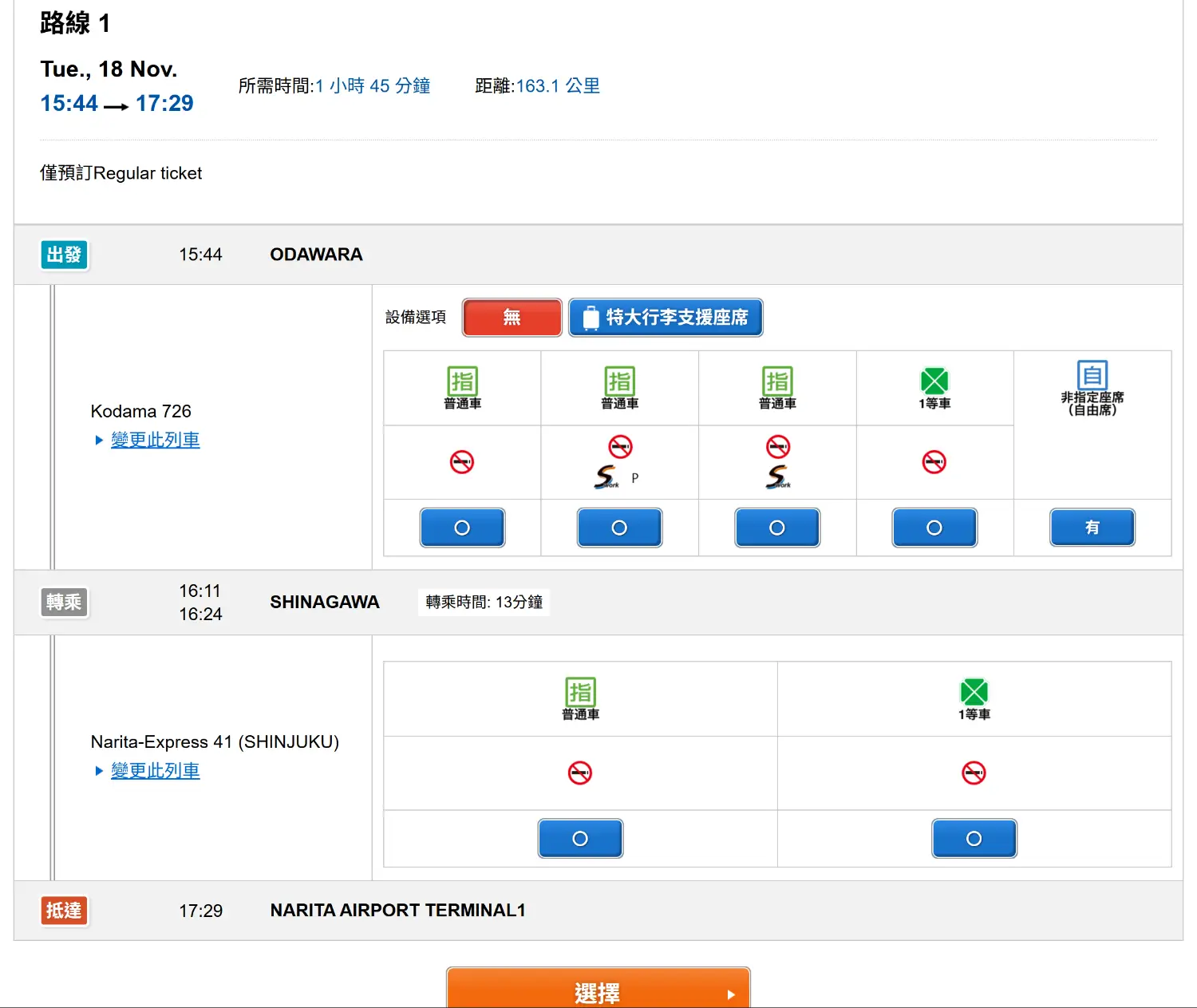 : 因為第二段路線的N’EX出發時間依序是16:24跟16:49,想請教如果我都事先在網站上購買
