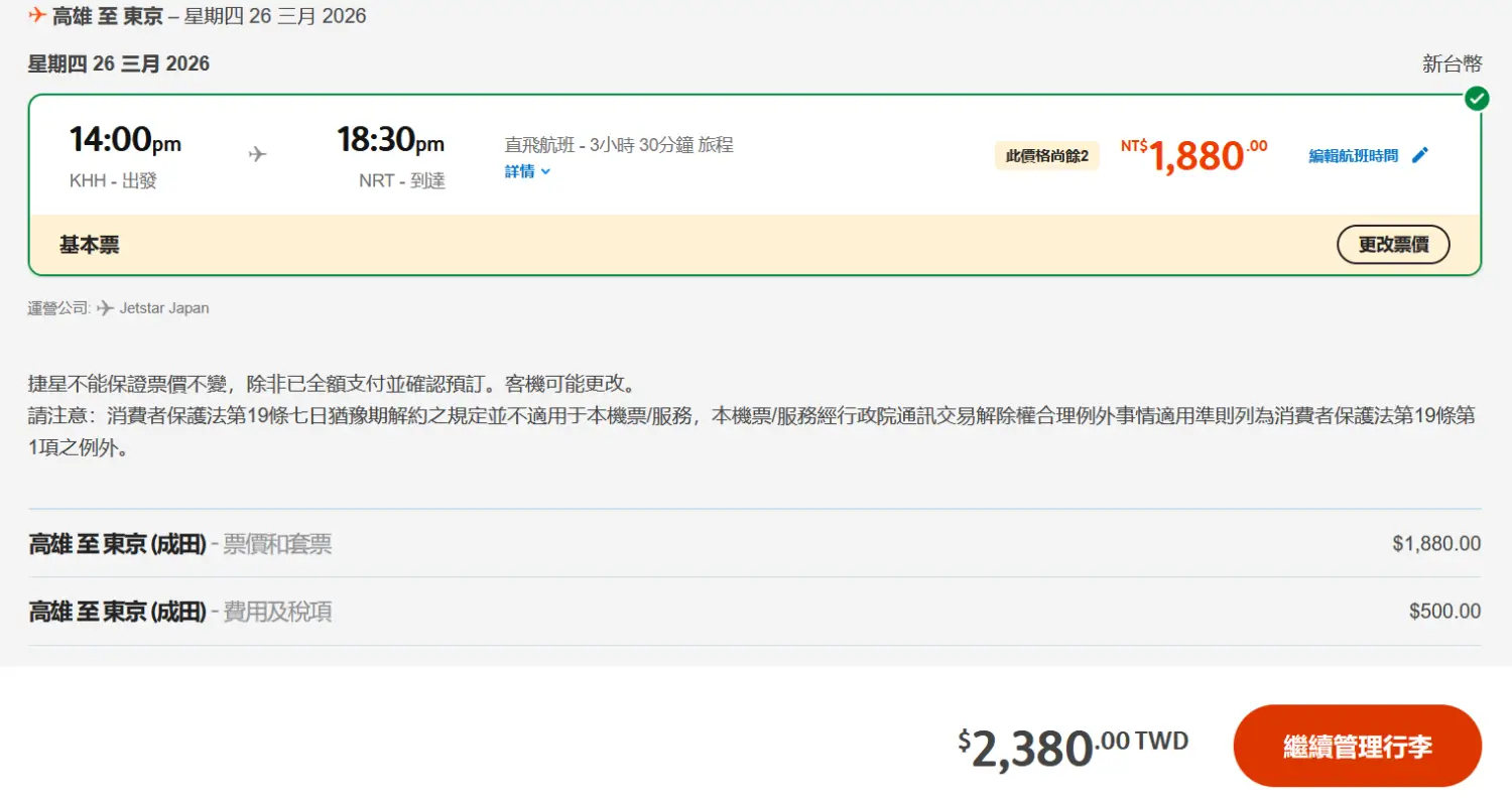 [資訊] 捷星日本航空Hello東京特價優惠置底