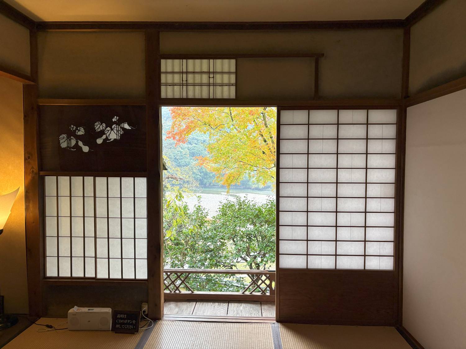 以前人就是坐在這間茶室賞月,據說月光會照在肱川上反射進來,十分有雅趣