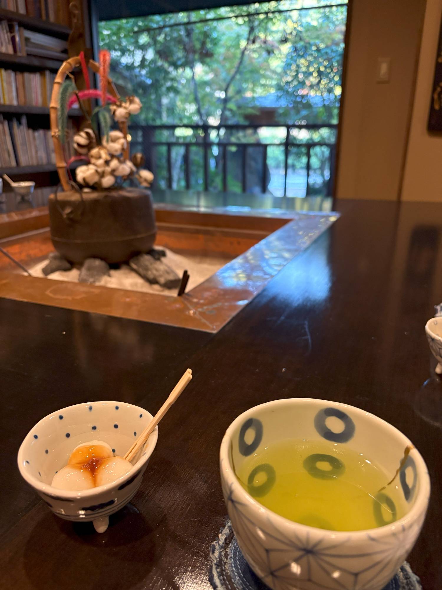 check in的時候會在茶室享用糰子和茶,有點意外是鹹的醬油糰子而不是甜食