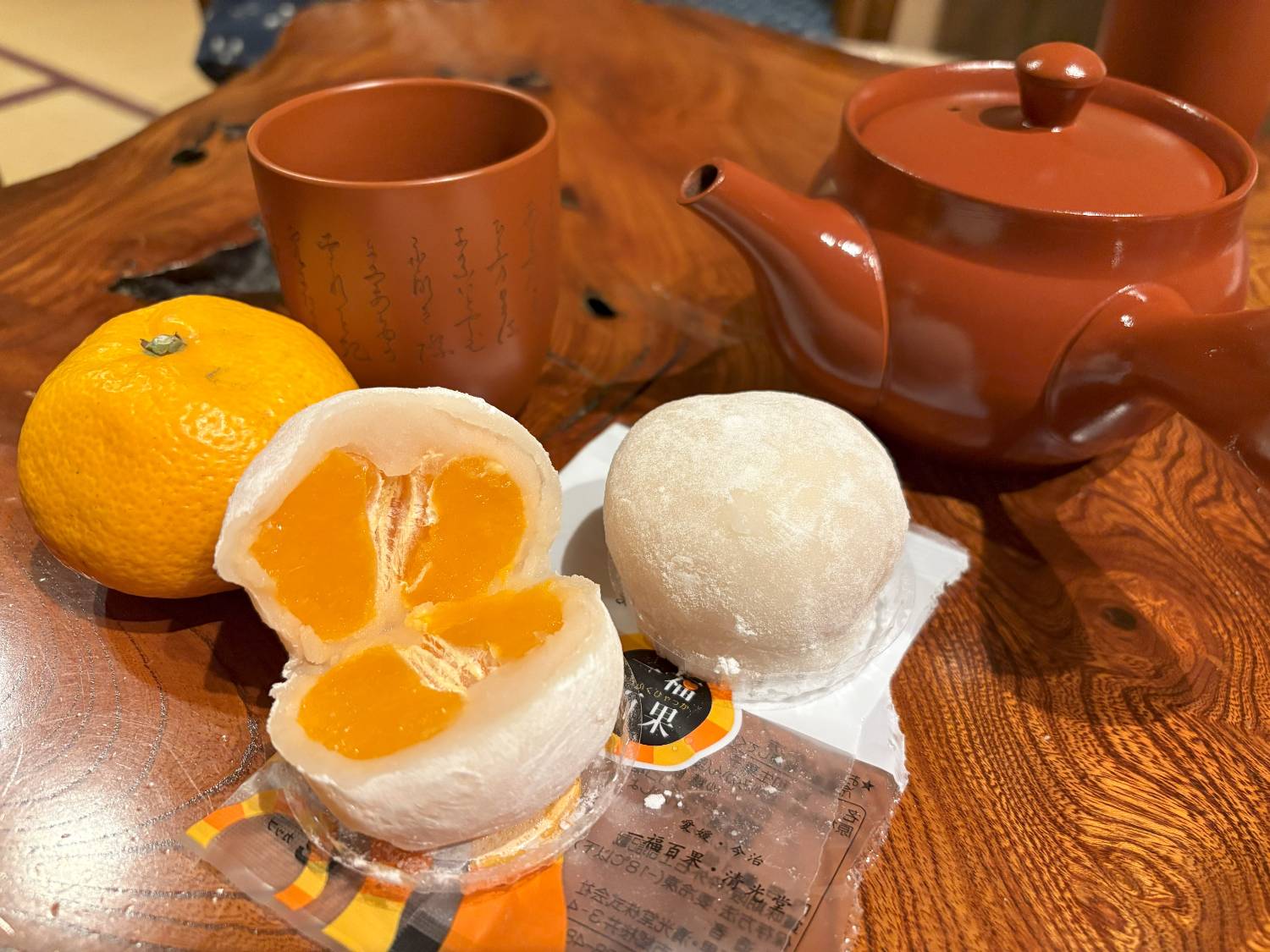 泡了湯以後回房間吃個蜜柑大福結束滿足的一天