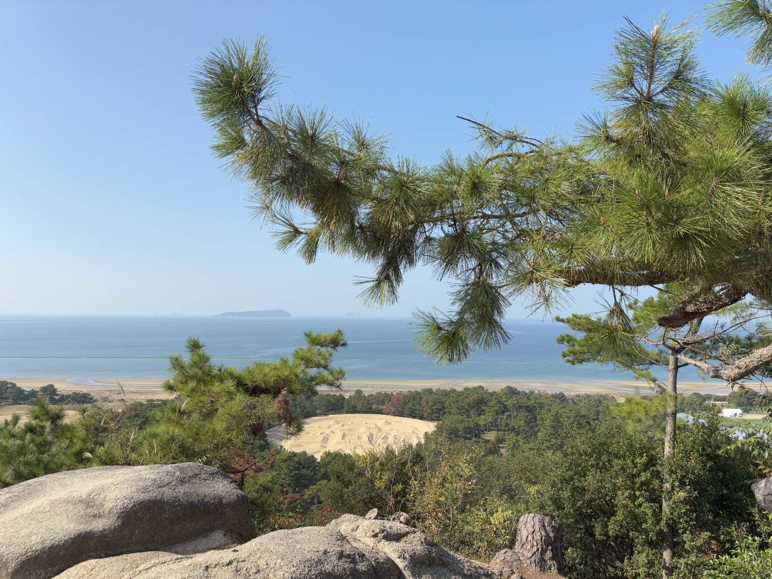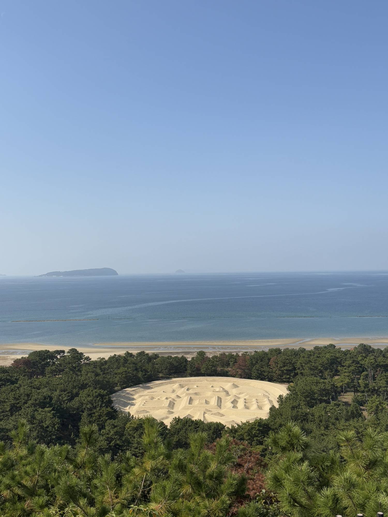是眺望巨大的錢型砂畫「寬永通寶」的觀景台