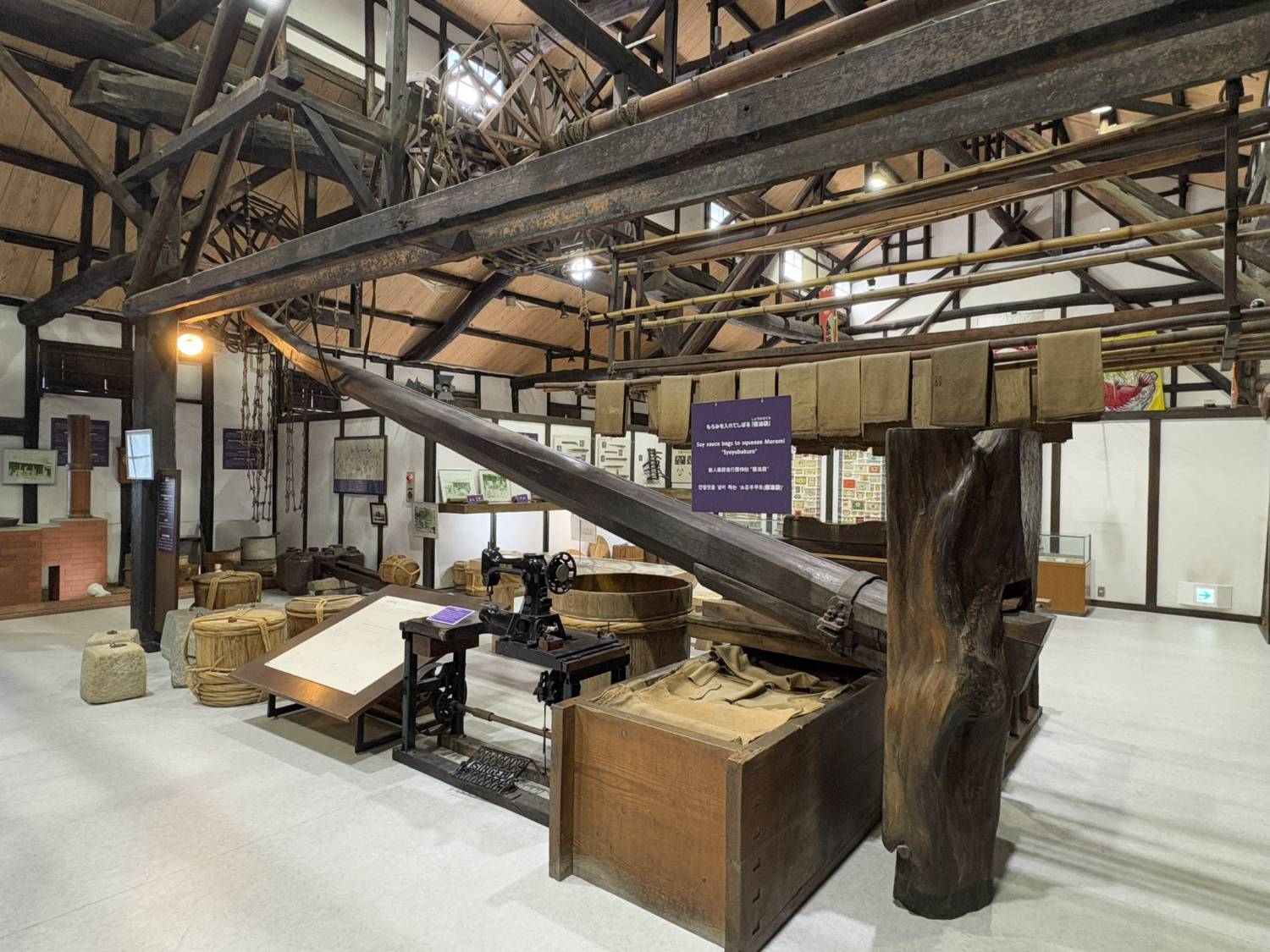 館內展示了許多以前製造醬油的工具設施,包括車麻袋的縫紉機都有