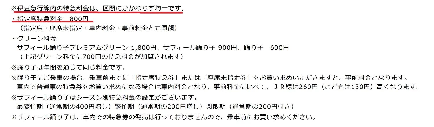 若確定要從伊東上車,即使是買熱海---河津區間的踊子號特急券,乘車券可準備