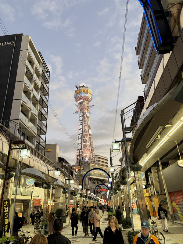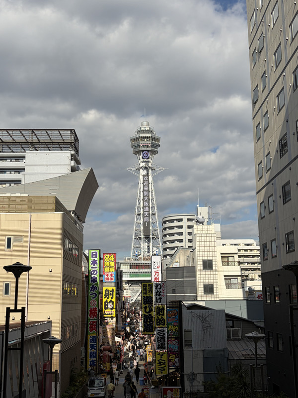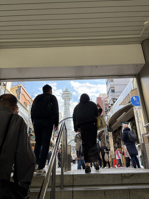 之後移動到惠美須町站,出站上階梯後映入眼簾的就是通天閣高塔