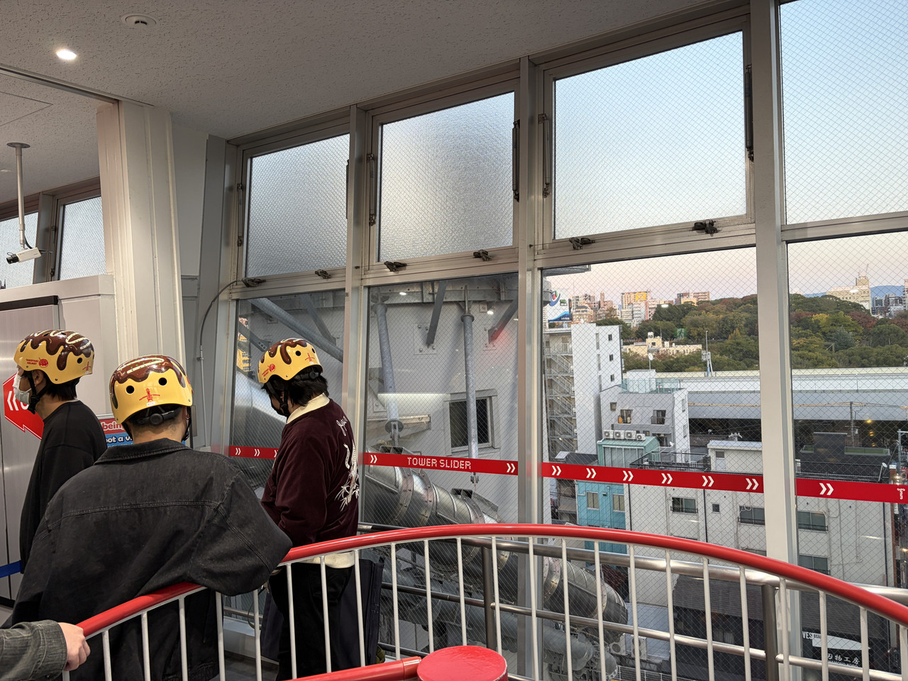 前面因為一些失誤,沒有順道預約「Tower Slider」,導致我重新排隊入場。