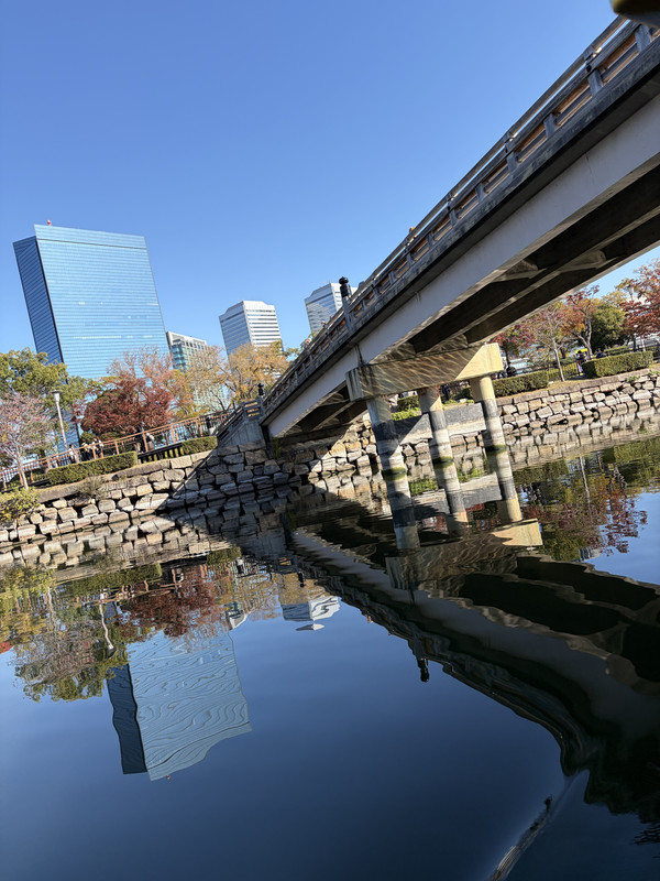 早上八點左右,公園外圍有零星散布、慢跑的居民、旅客,像是東京皇居一樣,大阪城公