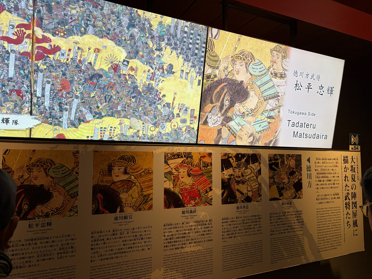 屏風以及還原場景展示,並且有影片介紹著整起戰役的歷史、戰況以及幾位重要武士。7
