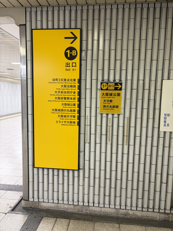 從1-B出口出來,沿著斜坡往上走就會到公園了,還會經過大阪府警察本部,我腦中一直