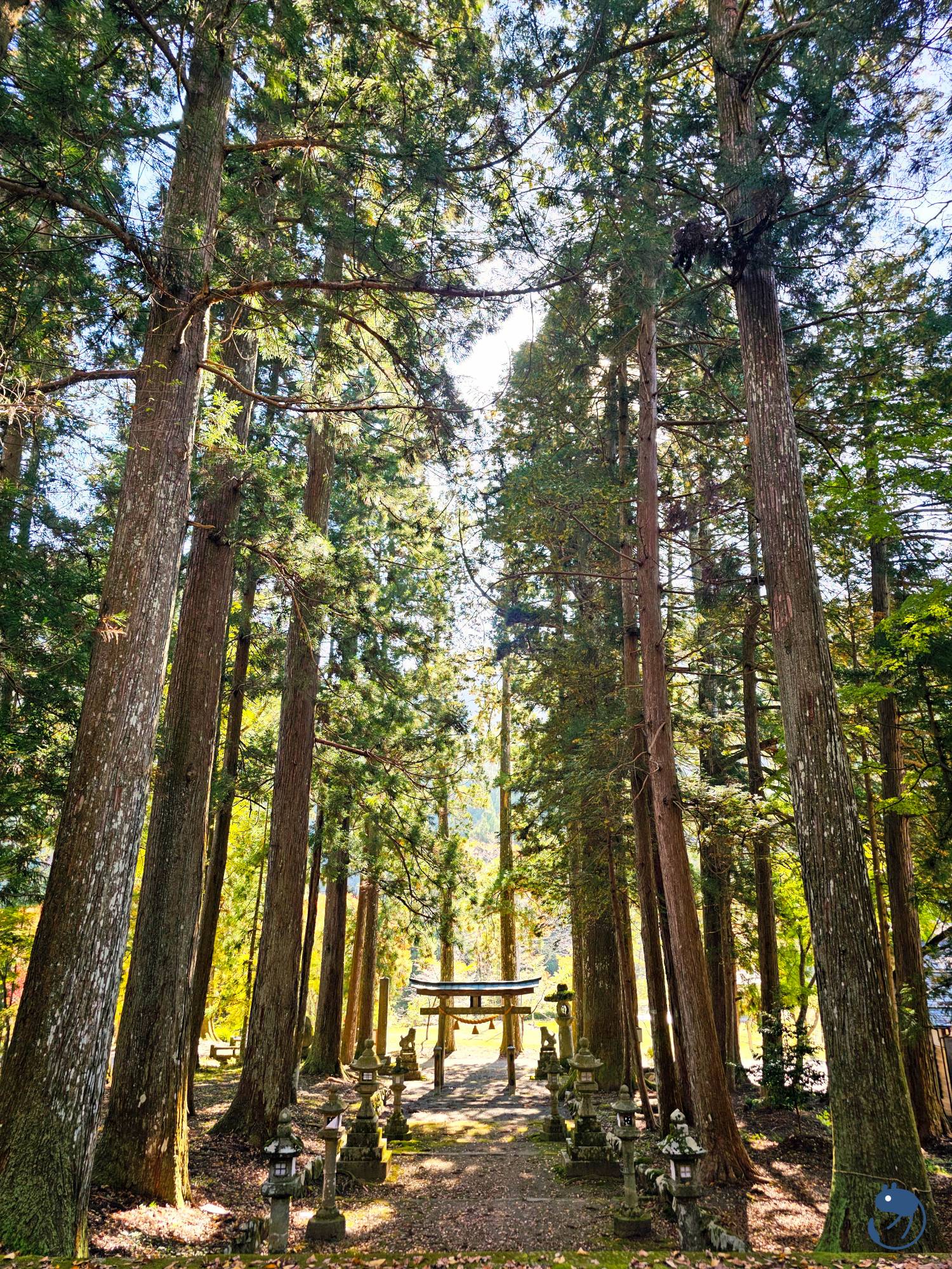 參道兩旁排列著樹齡數百年的巨大杉木,覆滿青苔的石階帶有神秘感的氛圍。