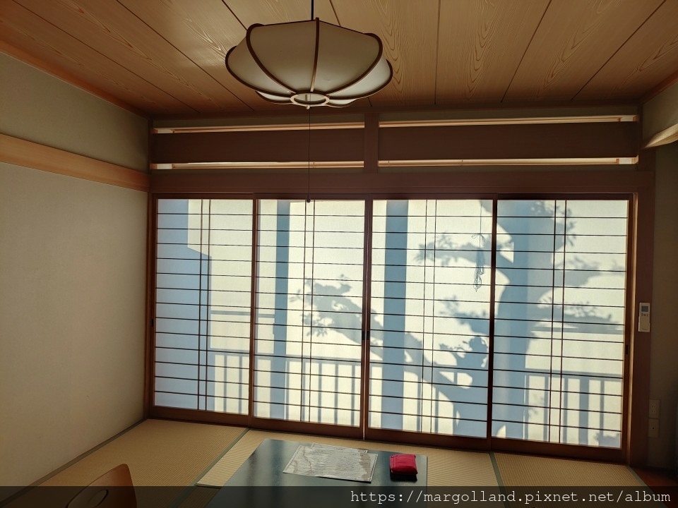 一走進房間,就看到窗戶上夕陽投影好美,這種借景的作法很有巧思。