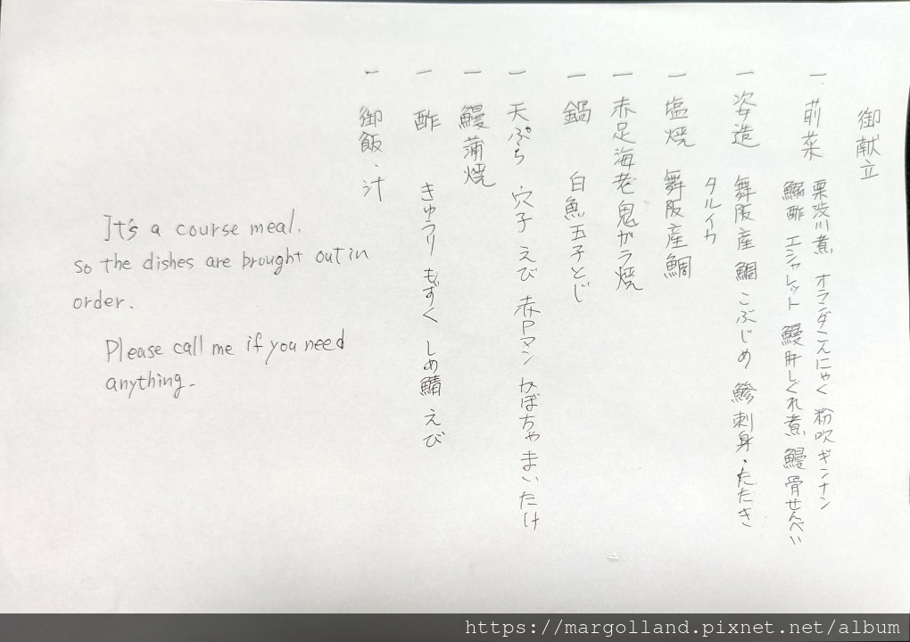老闆娘發現直接給我們文字比較容易,後來菜單就給我們手寫版的說明。