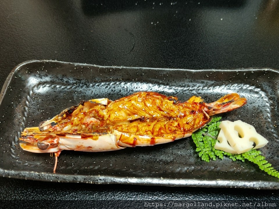 用醬油跟味噌調的醬去烤的赤腳蝦(熊蝦?),這個好好吃,看似硬,其實外香內緊實而