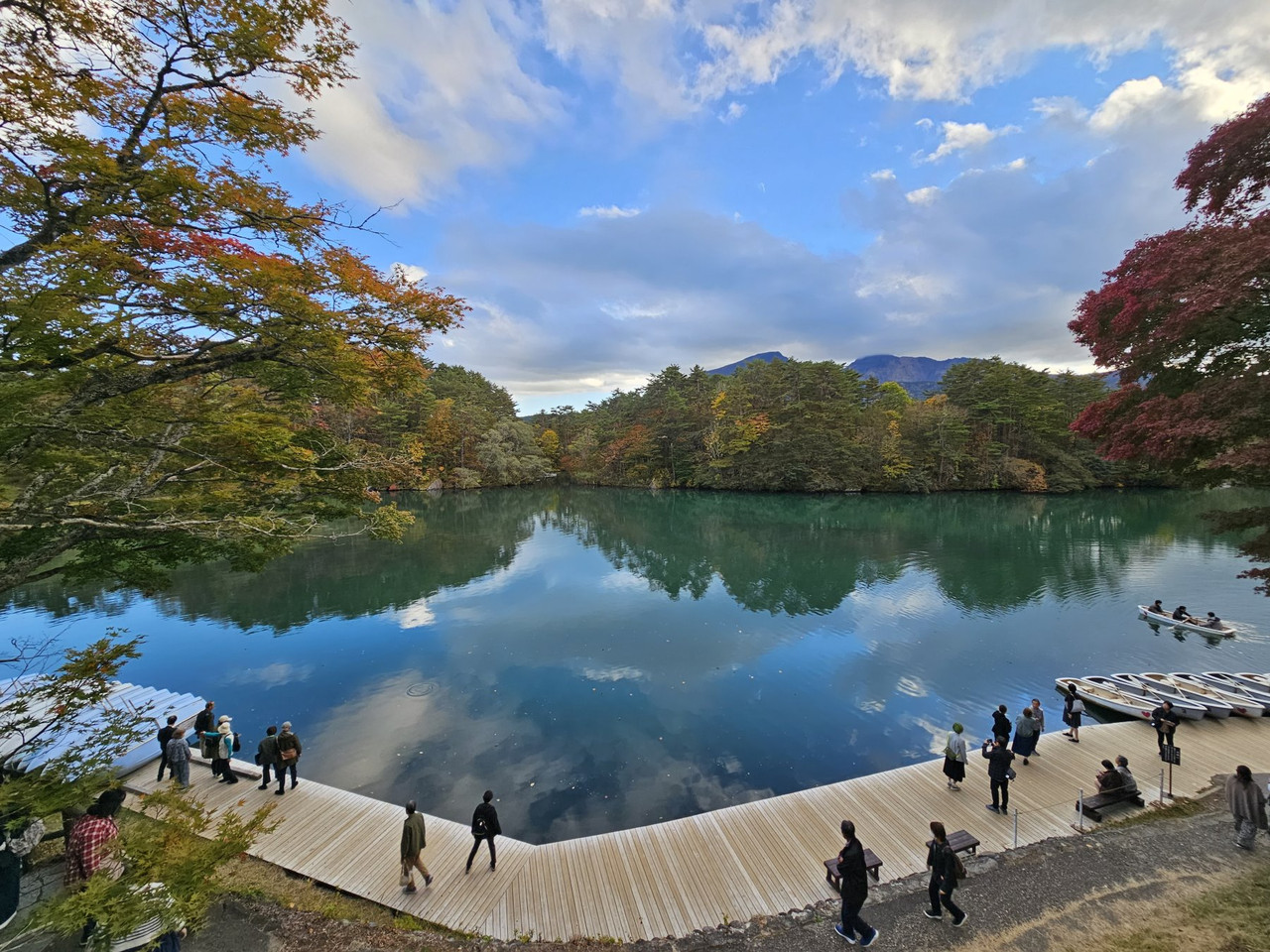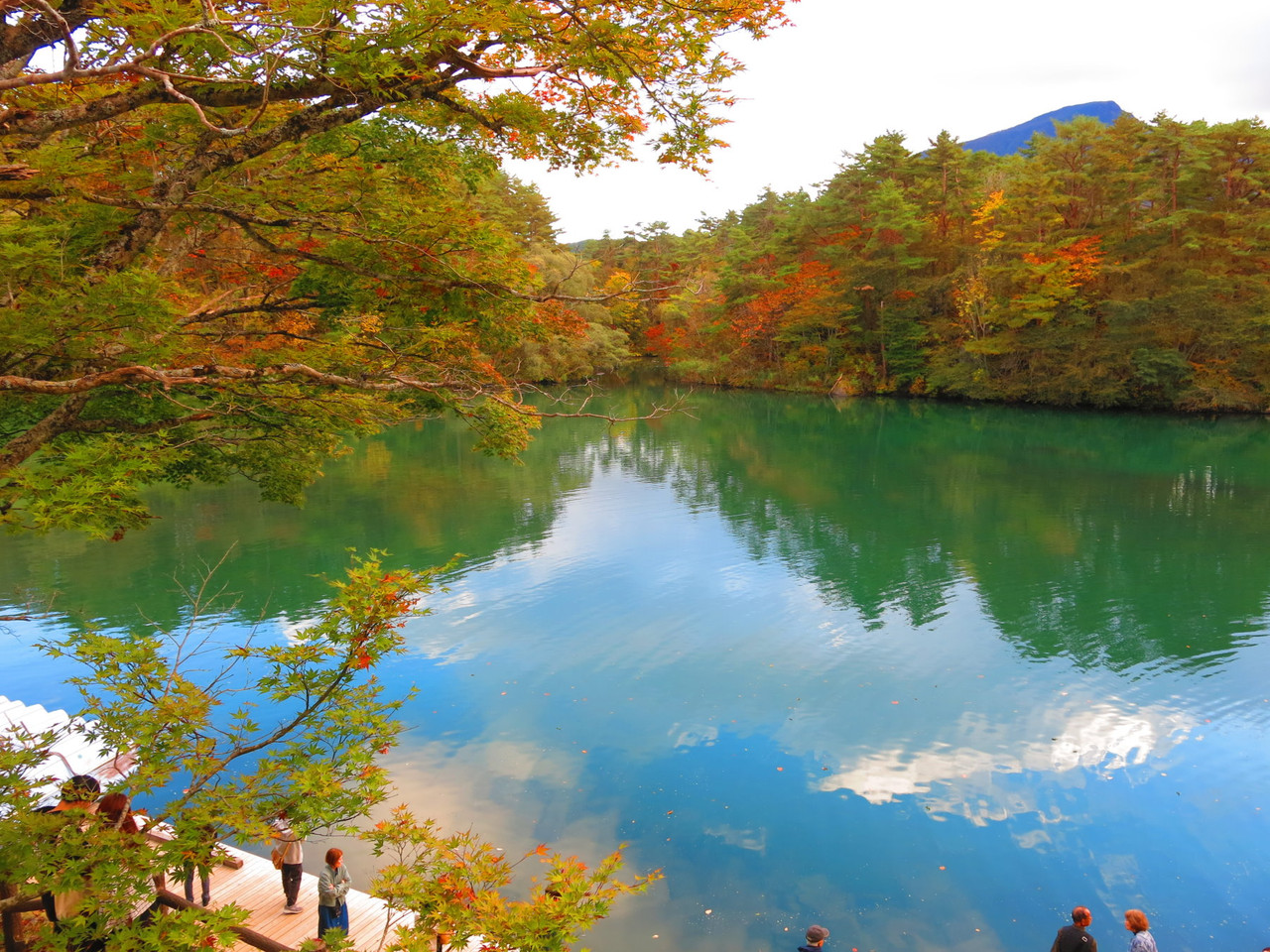 看到這湖畔景色瞬間完全理解為什麼五色沼是著名的賞楓勝地。
