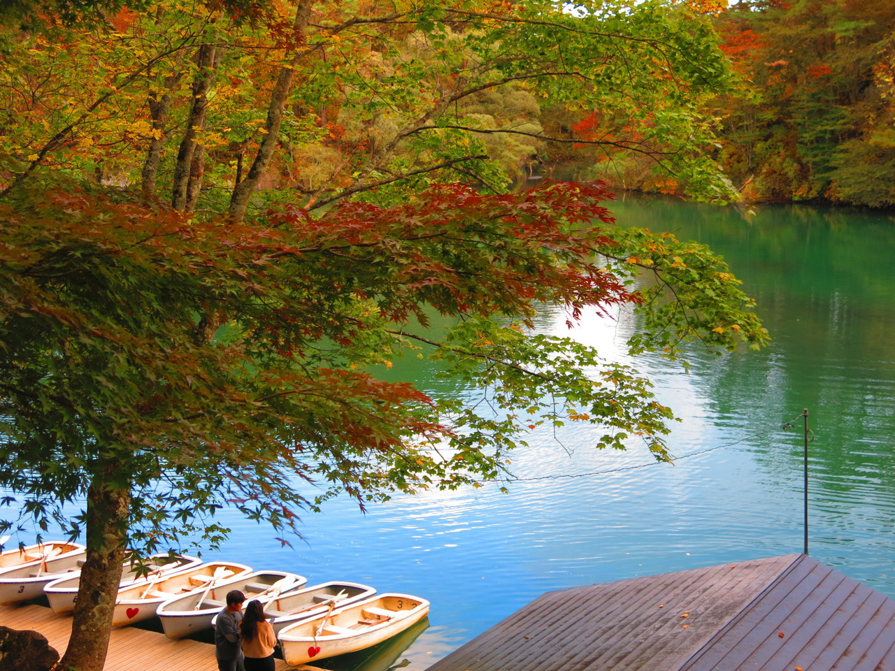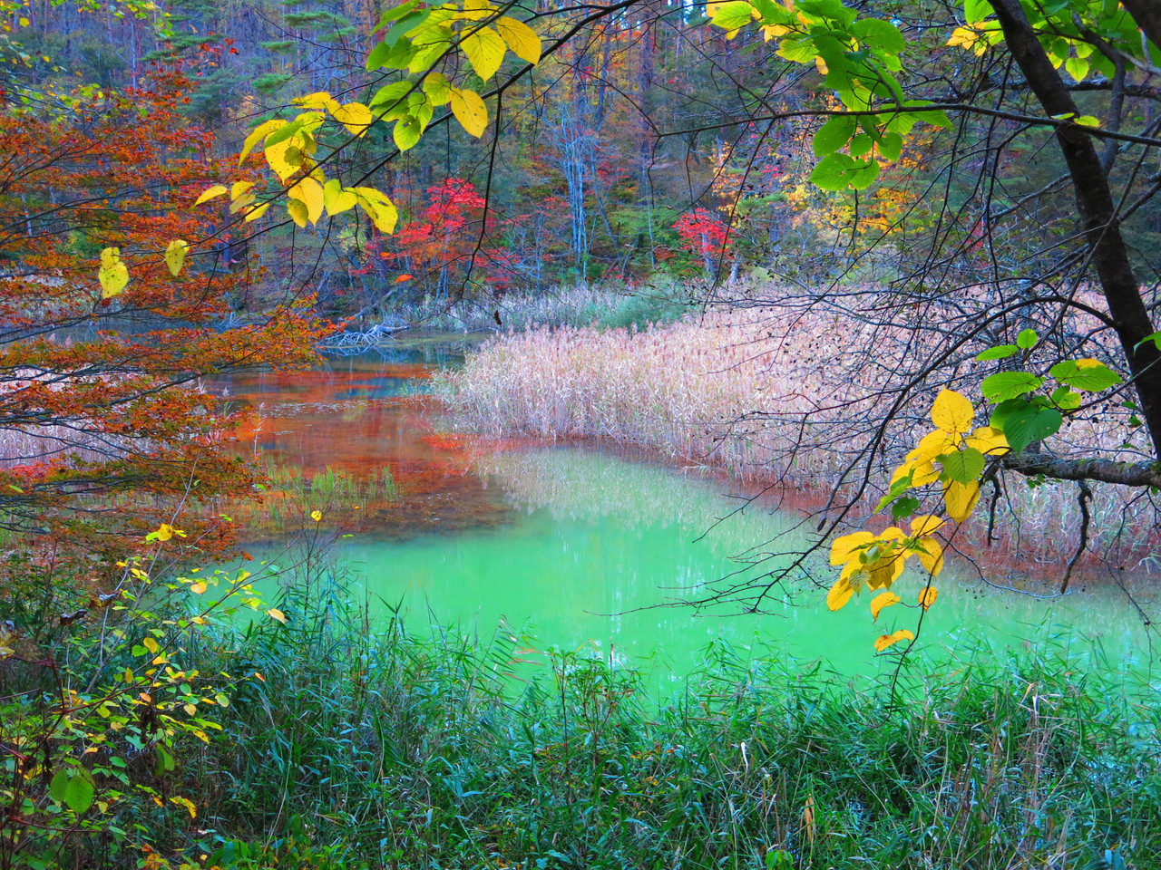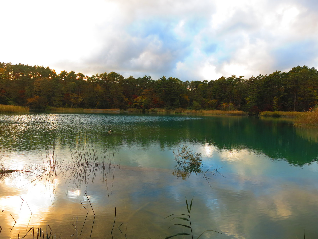 離開弁天沼,接著是琉璃沼。湖沼的水中含有大量的鈣與硫酸離子,是一座清澈湛藍、景