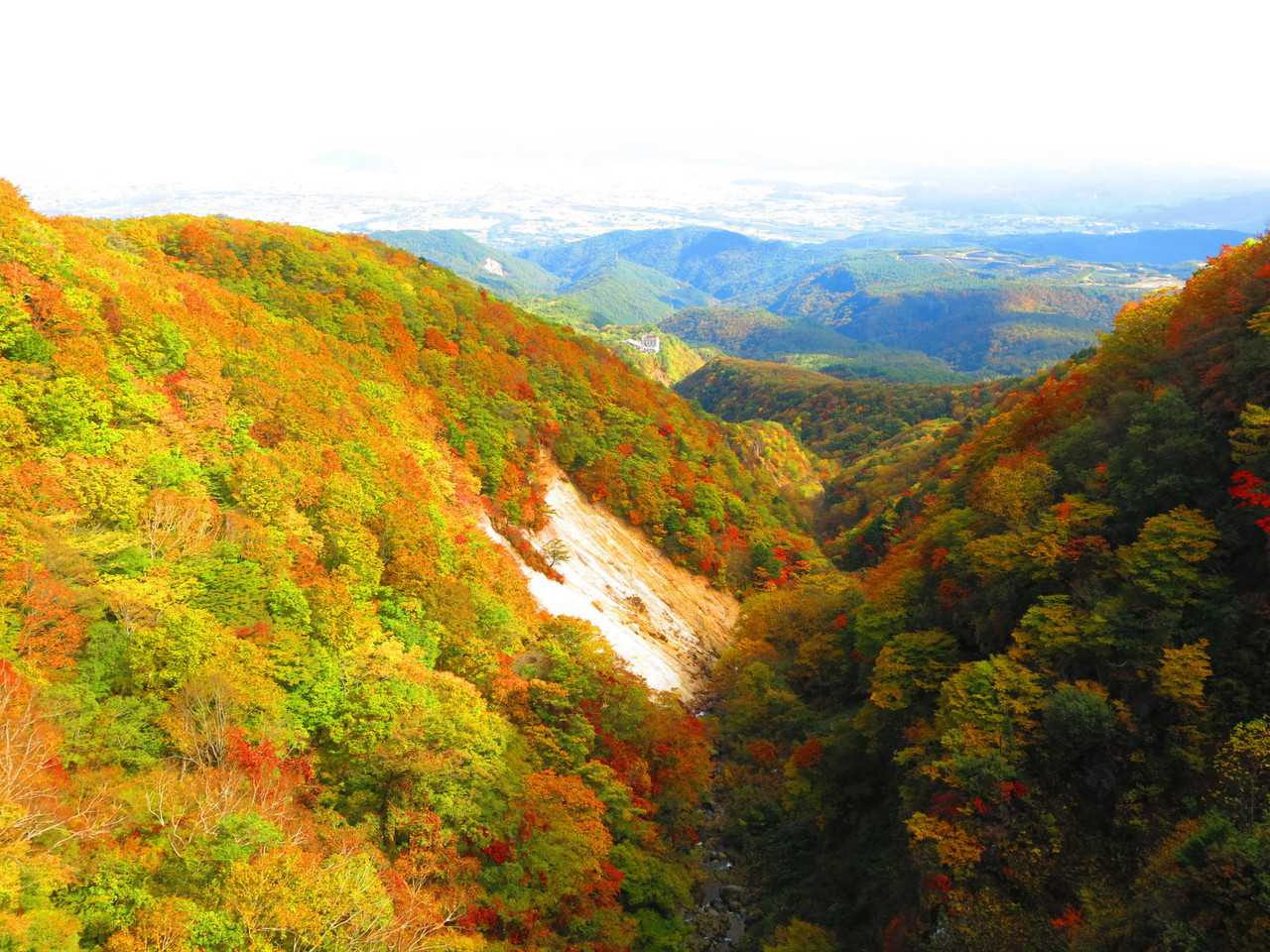 楓紅很美,然後遠方山下福島市區也看得很清楚。