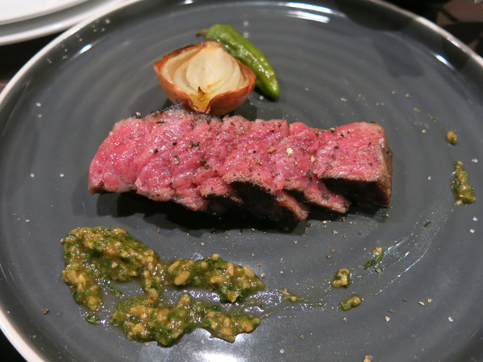 接著終於上了等候已久的和牛。這是會津的和牛。肉質鮮美,但是我覺得太生了,私心希