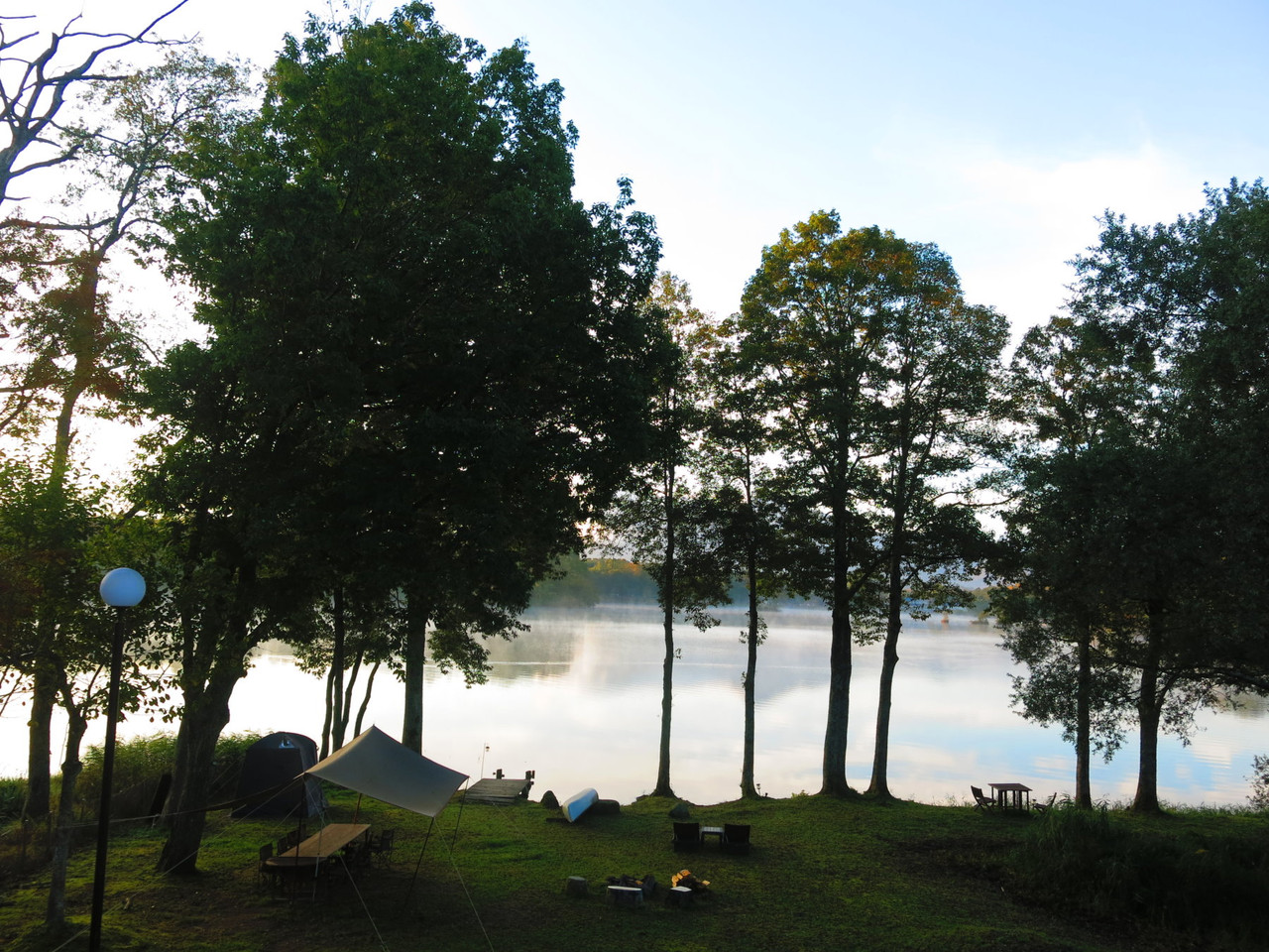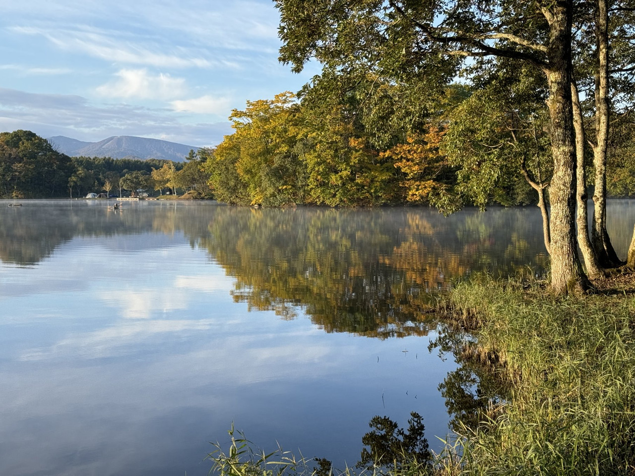 清晨的湖畔宛如仙境