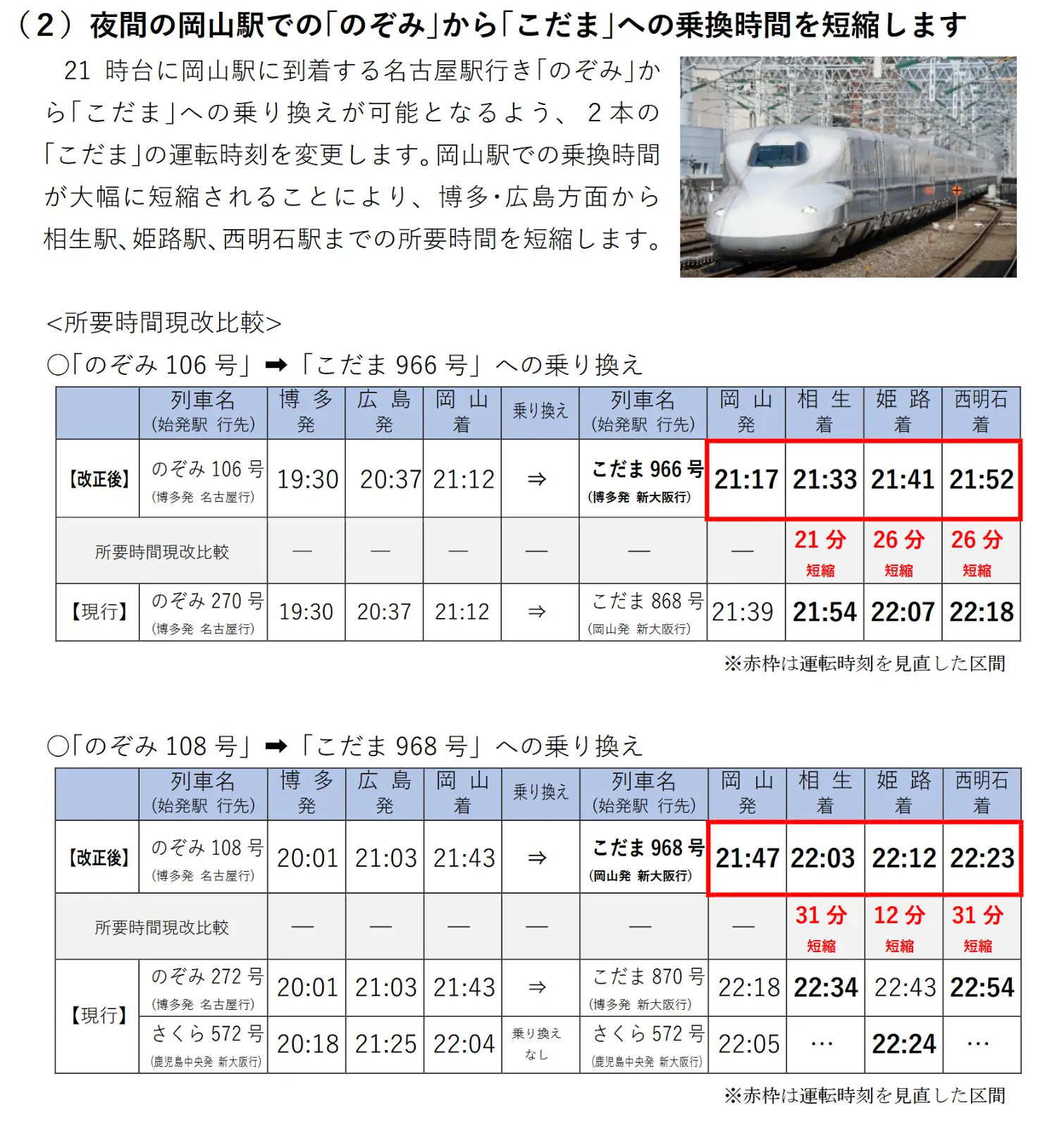 1. 山陽新幹線部分增發,請看上面JR東海的3/4項