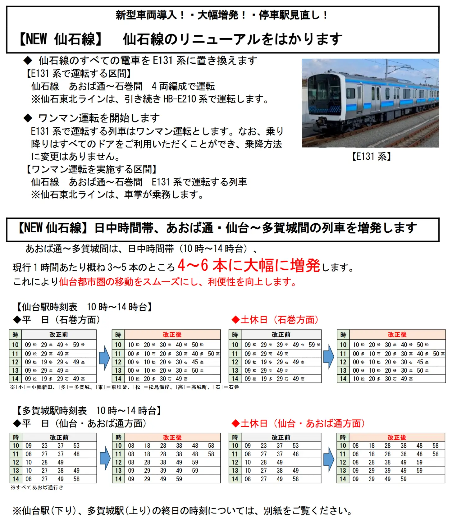 4. 仙石線全面更換E131新車並改為一人運轉