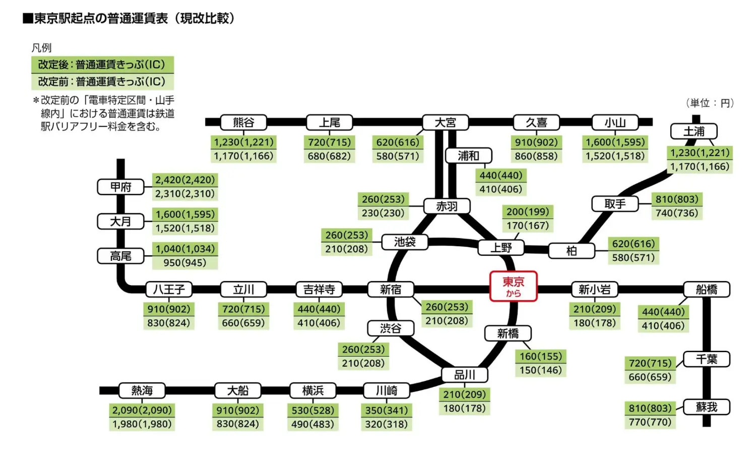 * JR東日本調漲票價,並修正票價計算規則(包括東京-熱海新在別線化)