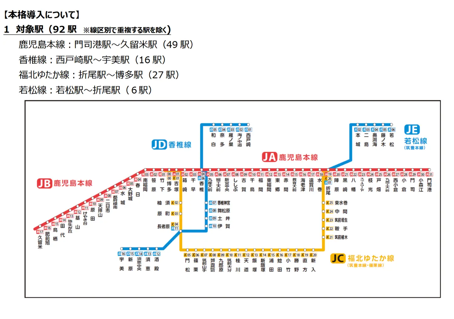 明年秋天以後將追加適用香椎線、福北ゆたか線、若松線