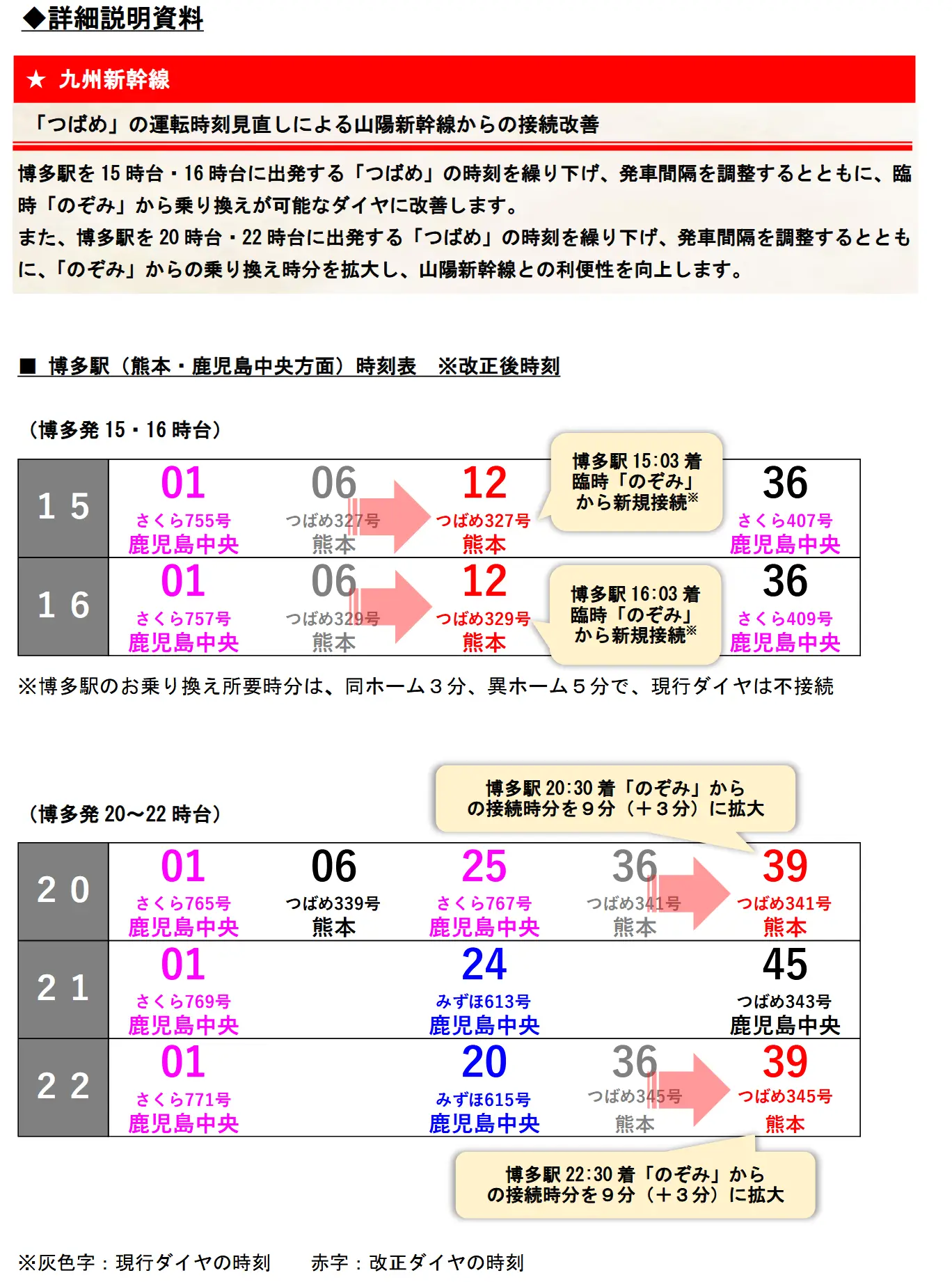 2. 九州新幹線つばめ改點,縮短轉乘時間
