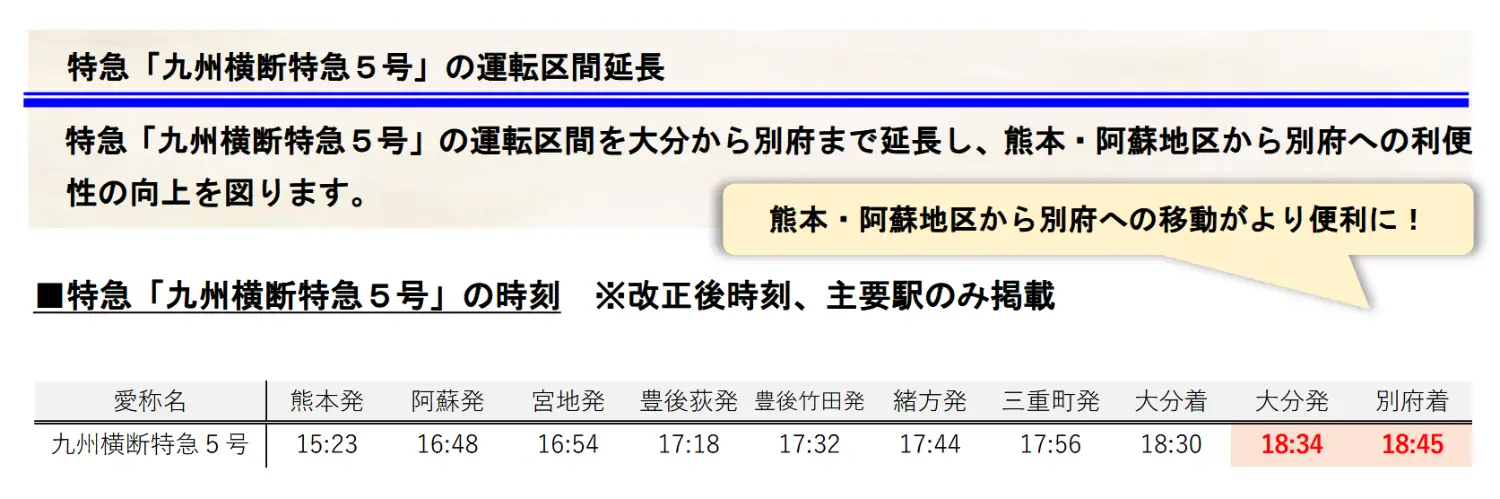 6. 九州橫斷特急5號延伸到別府