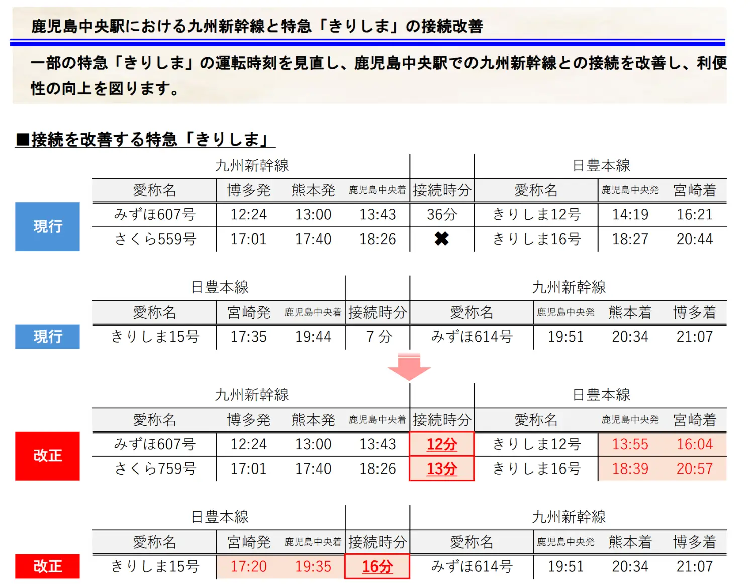 5. 改進霧島號往宮崎從九州新幹線接駁過來的時間
