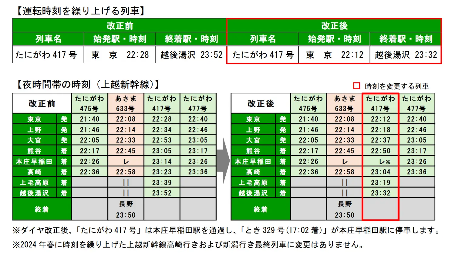 上越新幹線往越後湯澤提前20分鐘收班