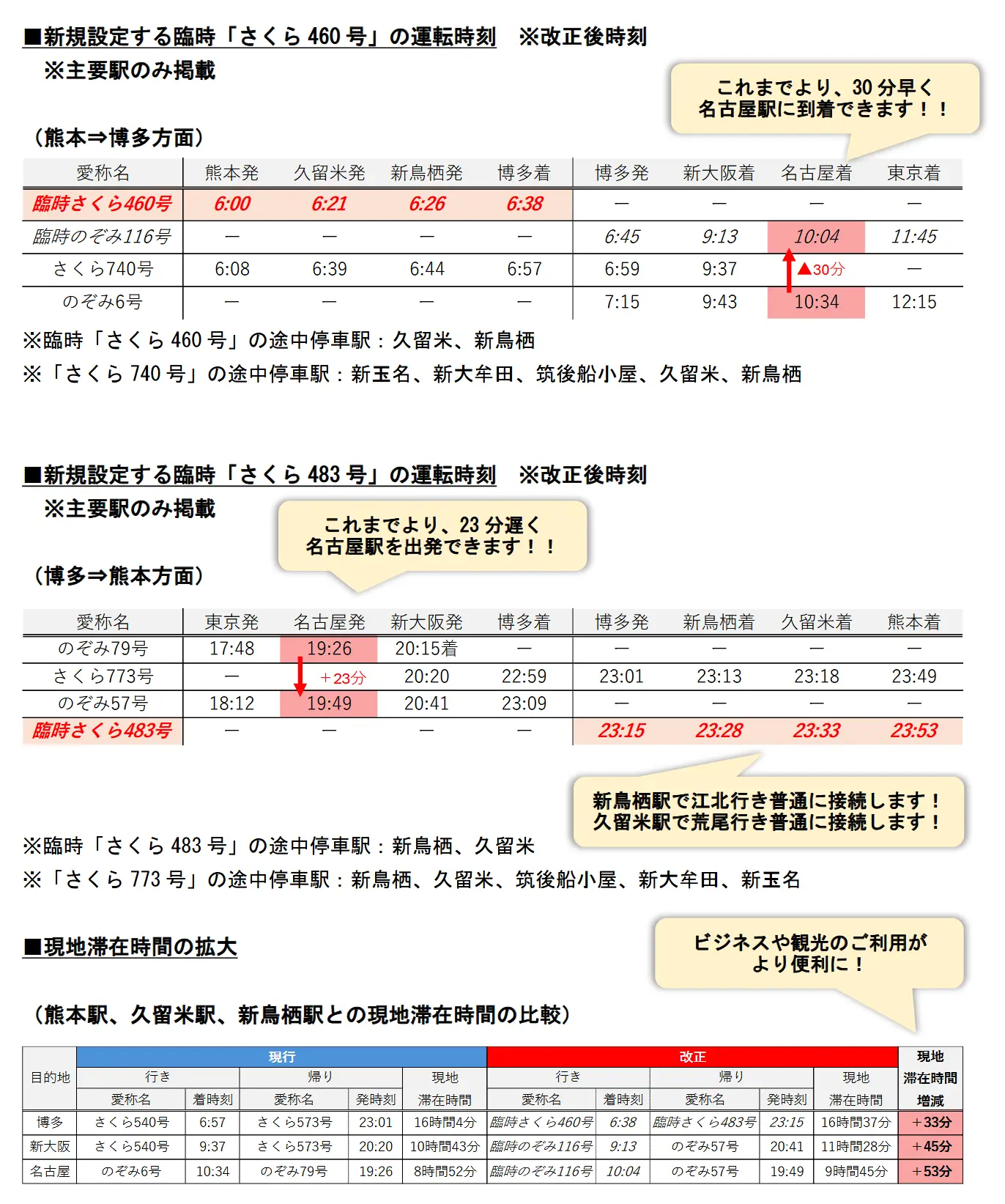 開班收班增發臨時さくら,設定博多接駁臨時のぞみ(上述)