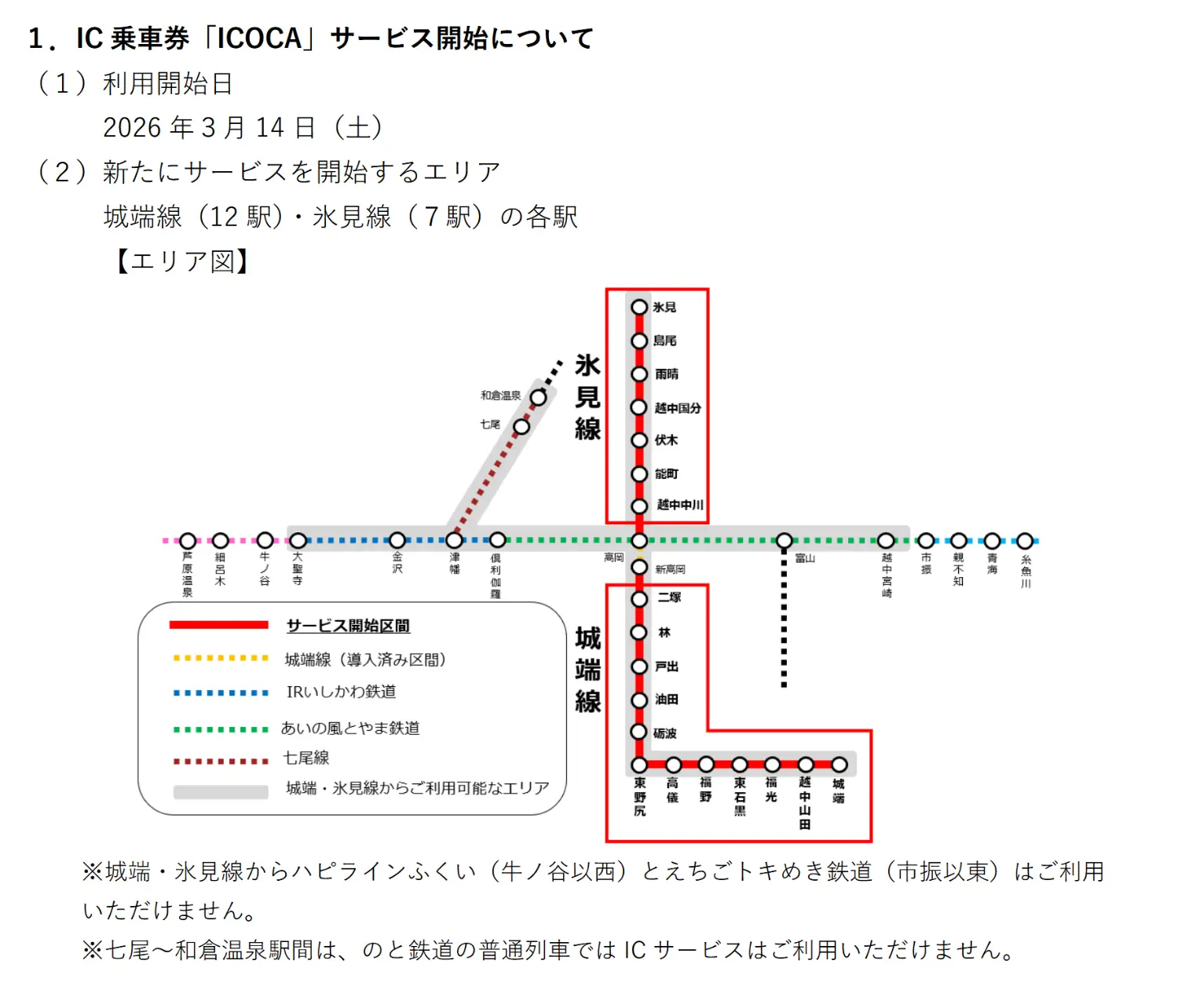 7. 城端線、冰見線開始適用ICOCA(這兩條路線也有夜間維修調整)