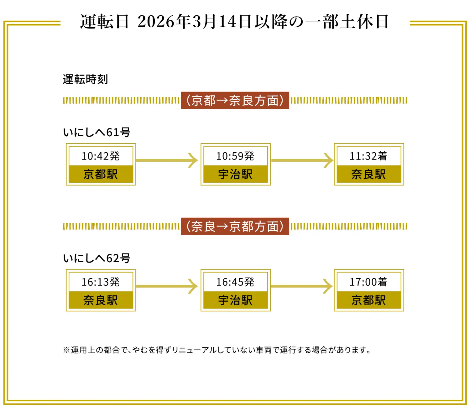部分假日將新增臨時特急「いにしへ」