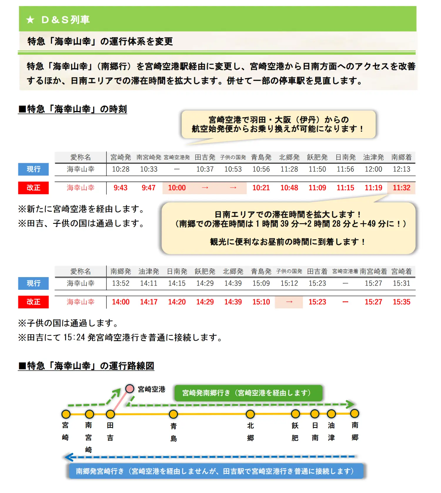7. 海幸山幸往南鄉方向增停宮崎機場,10:00發