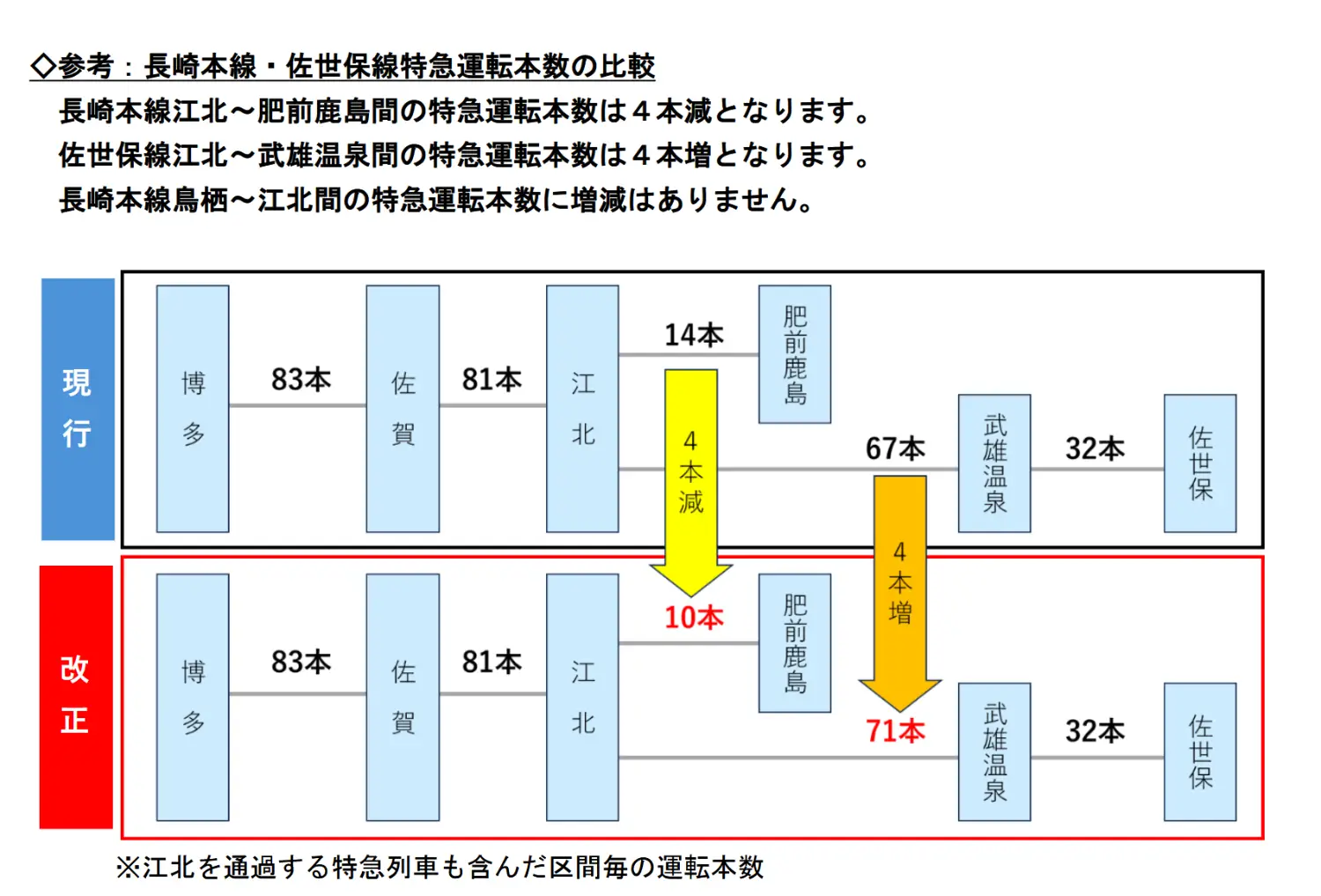 8. 36+3 星期一佐世保→博多的路段將不停靠江北