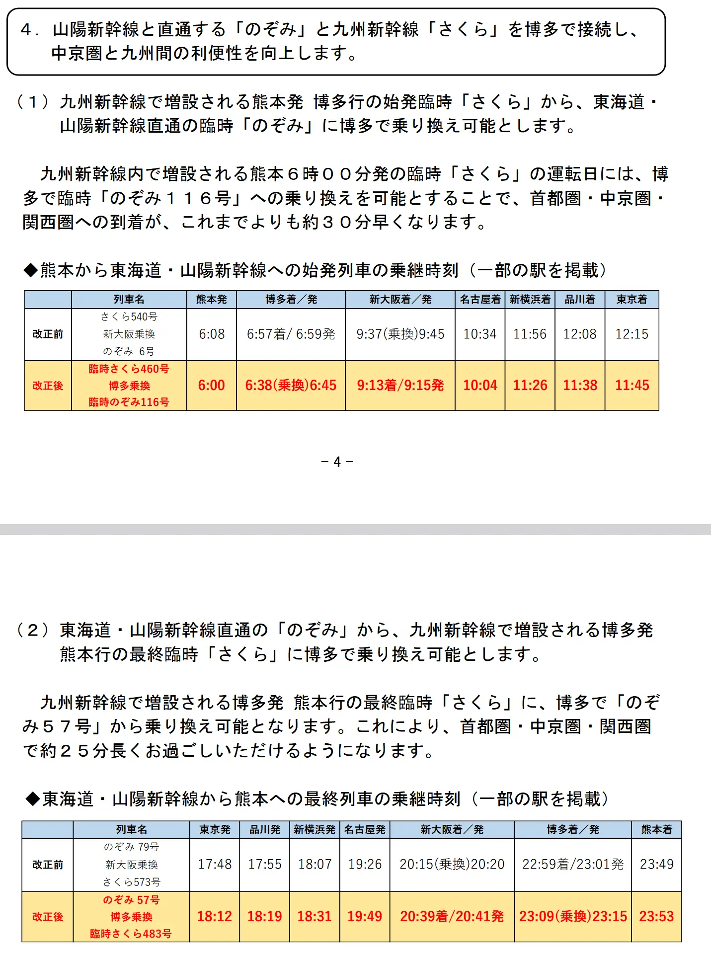 4. 配合JR九州增發臨時さくら(下述),設定博多接駁臨時のぞみ