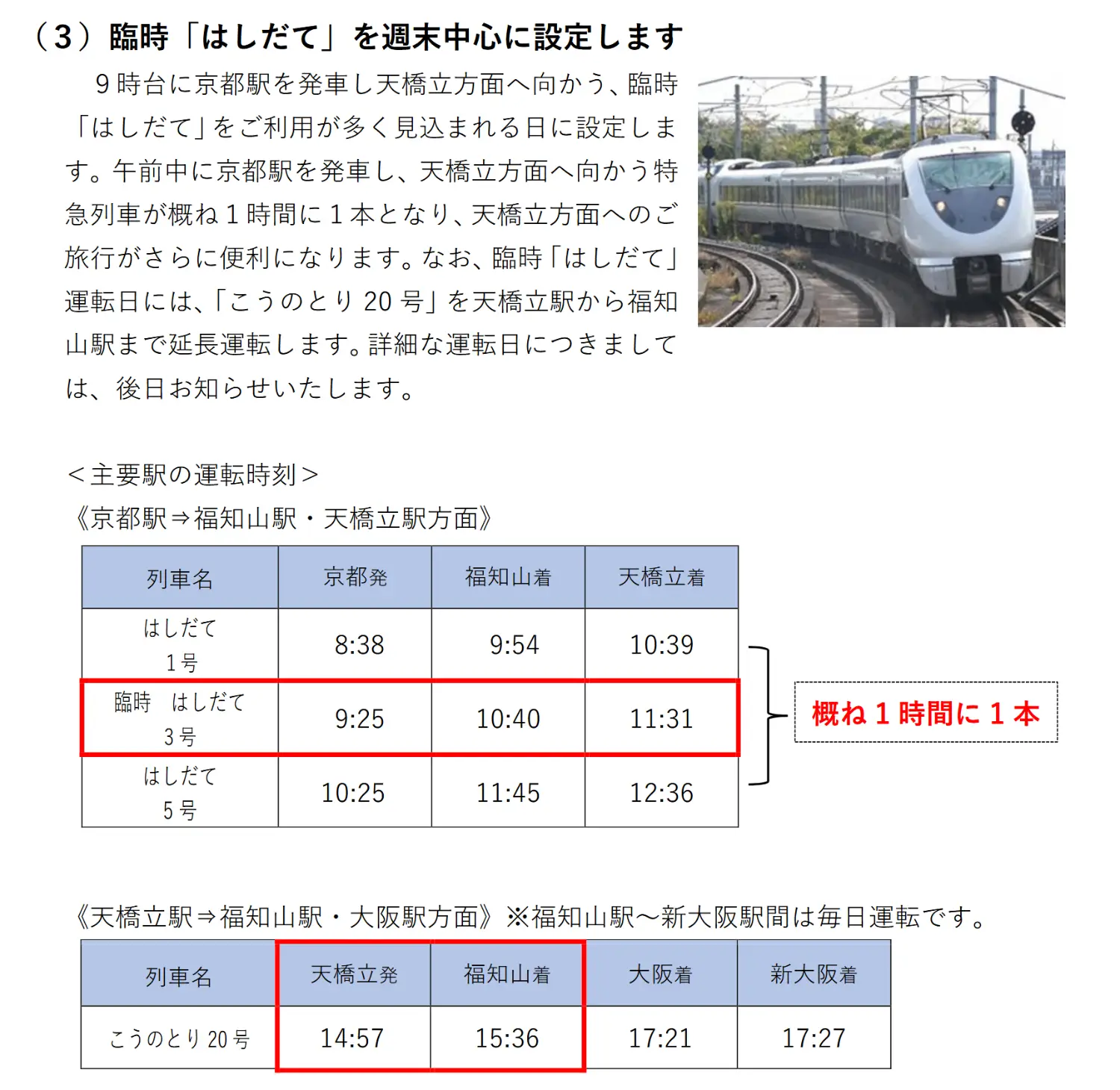 6. 周末增開往天橋立方向的特急