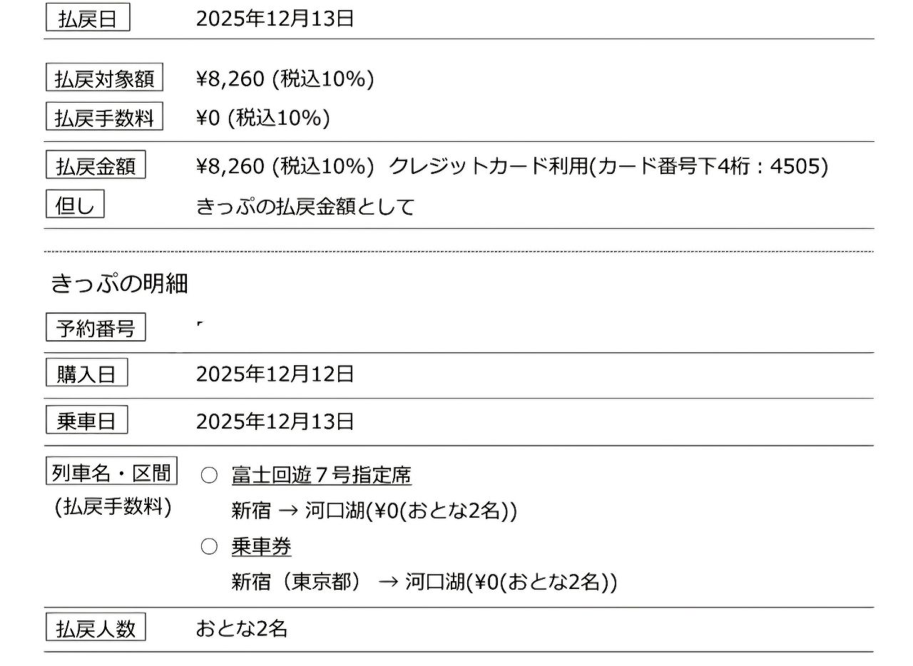狀況如下:因行程不確定,原本有多訂來回河口湖的富士回遊車票(去、回分開訂),行