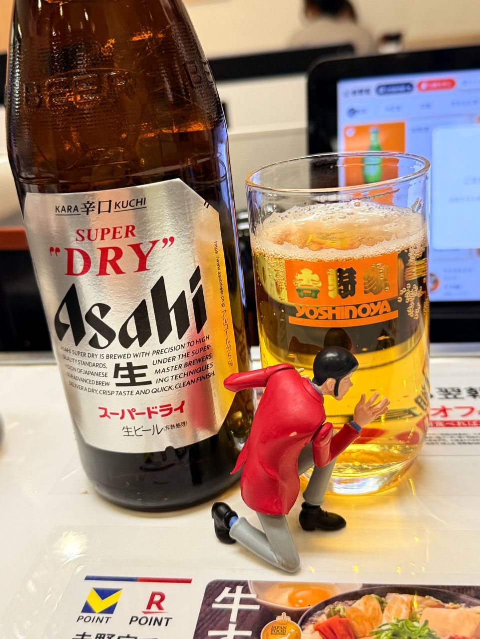 在海報上看到吉野家標籤的瓶裝啤酒就點了