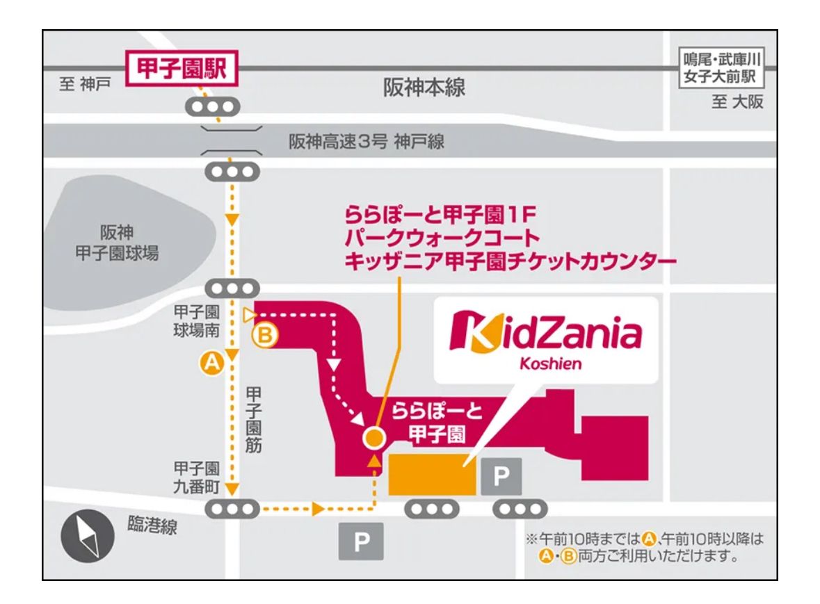 所以從車站走到KidZania Koshien要繞一大圈從停車場進去。