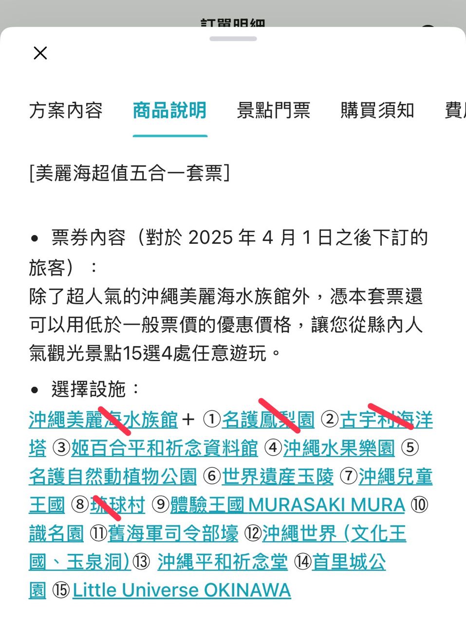 1. 讓售品項:沖繩5合1套票剩一景點*4