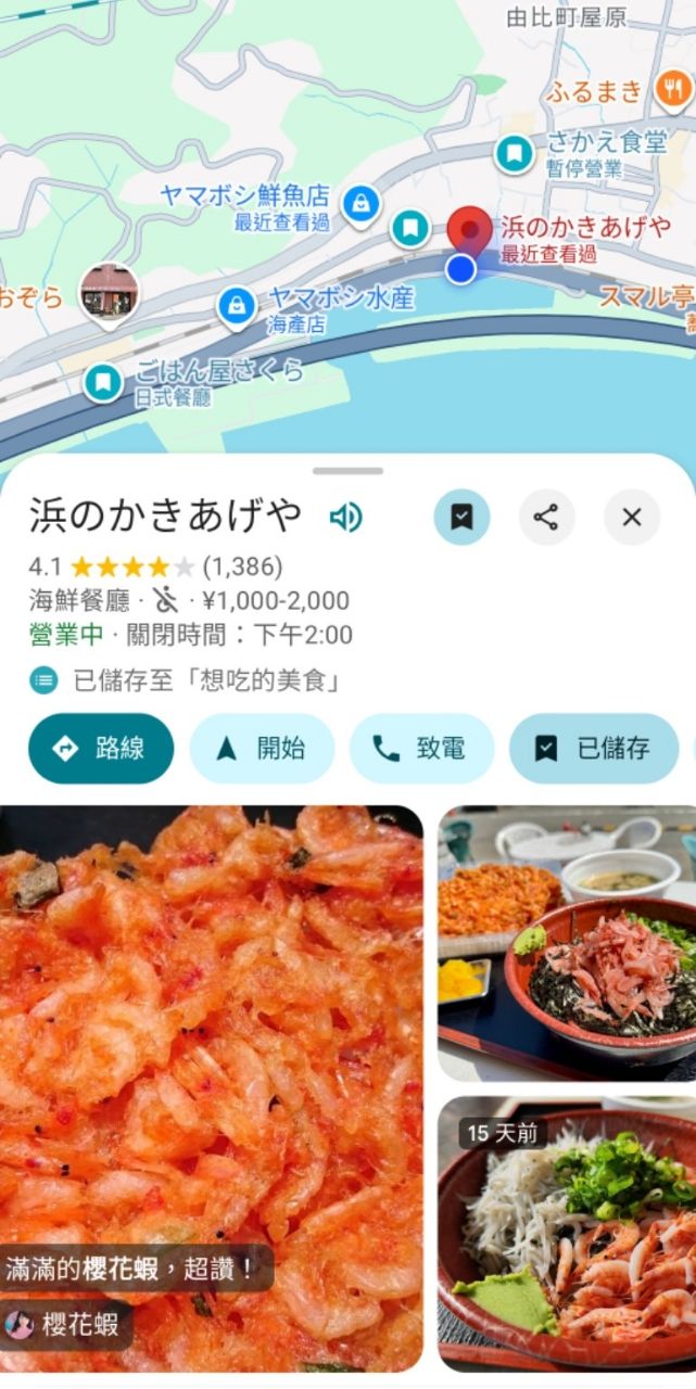 很好有開...馬上決定安排去由比港用餐,也許順便去由比港漁協直売所買點東西,晚上