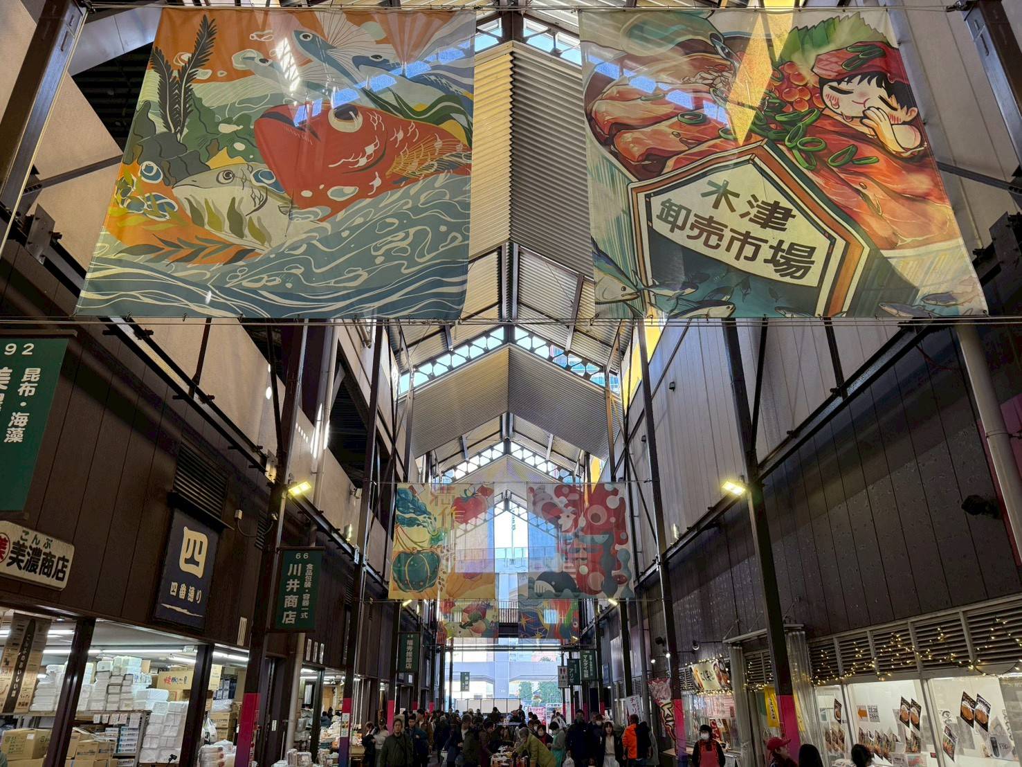 木津相較黑門來說的確比較有在地市場的感覺 周邊也有設置桌椅觀光客現場吃