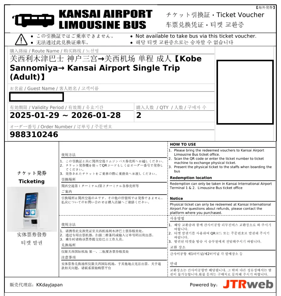 請注意,要在關西機場的利木津巴士櫃台,直接掃描QR Code兌換此票