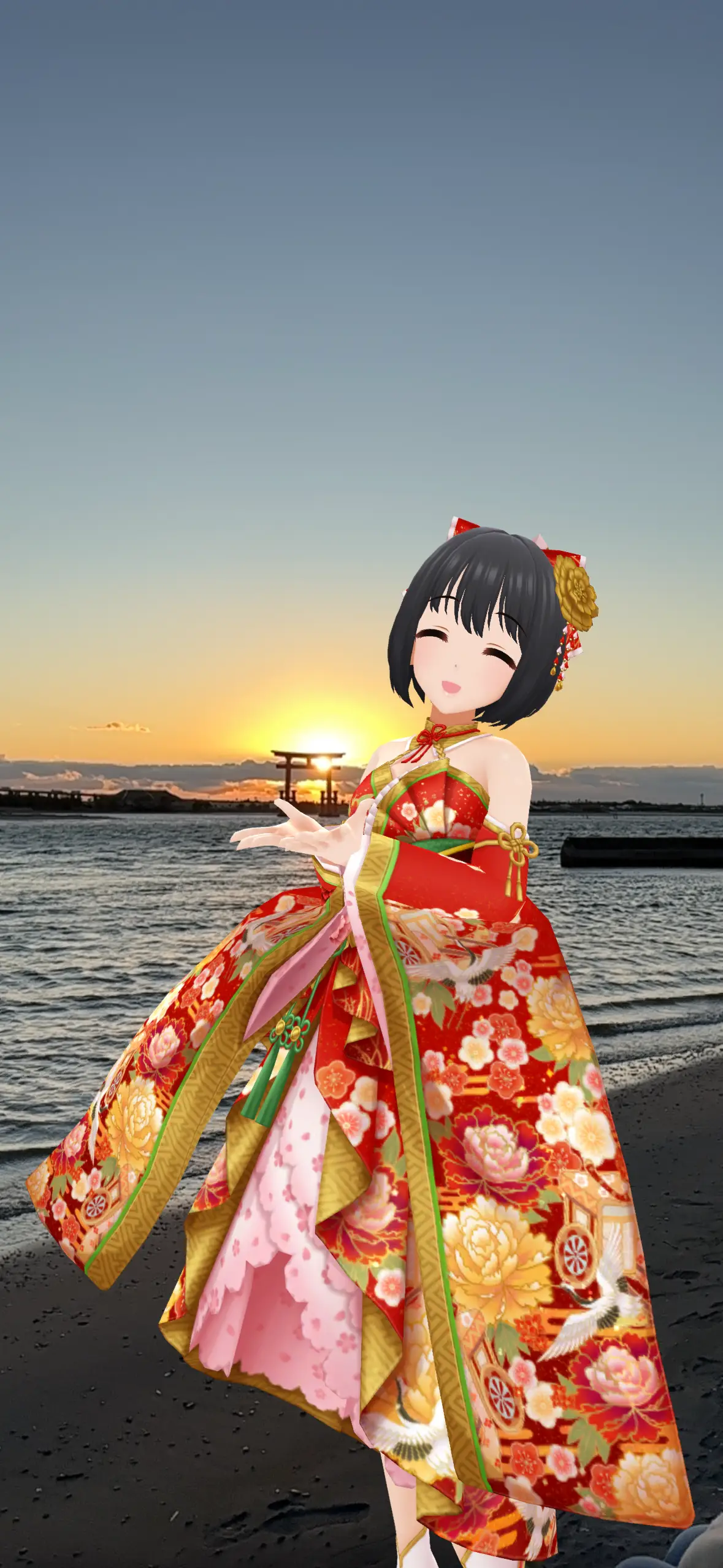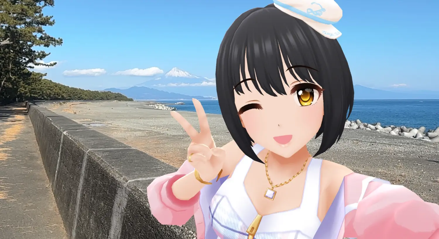 茄子希望能帶給人幸福而成為偶像,看到鳥居的說明時,想著或許MV是真的取景在這邊吧