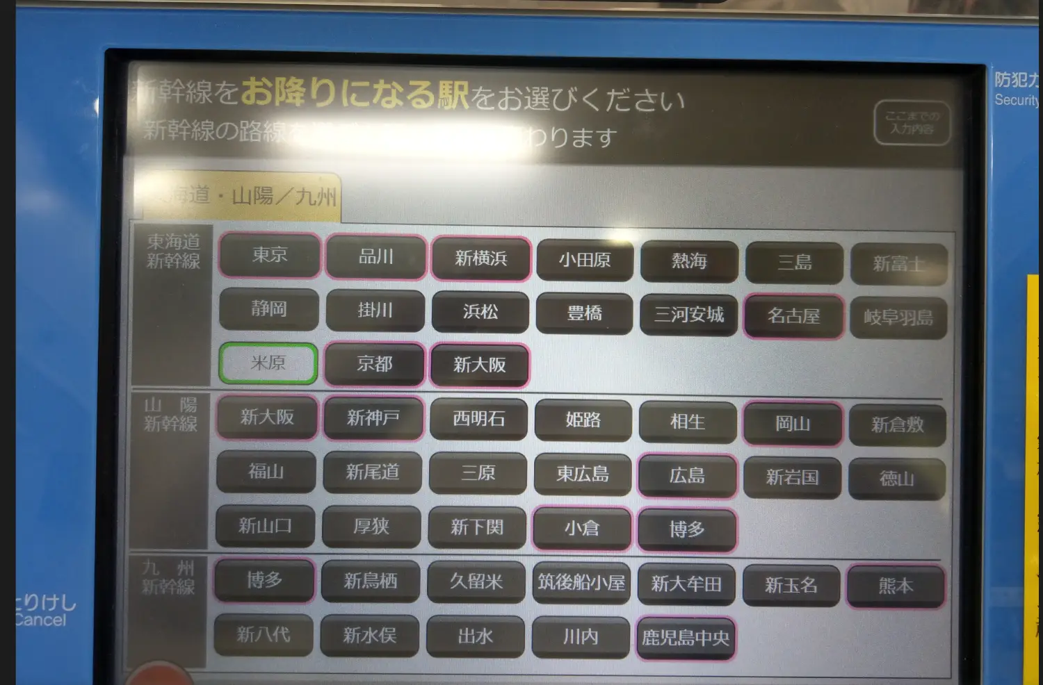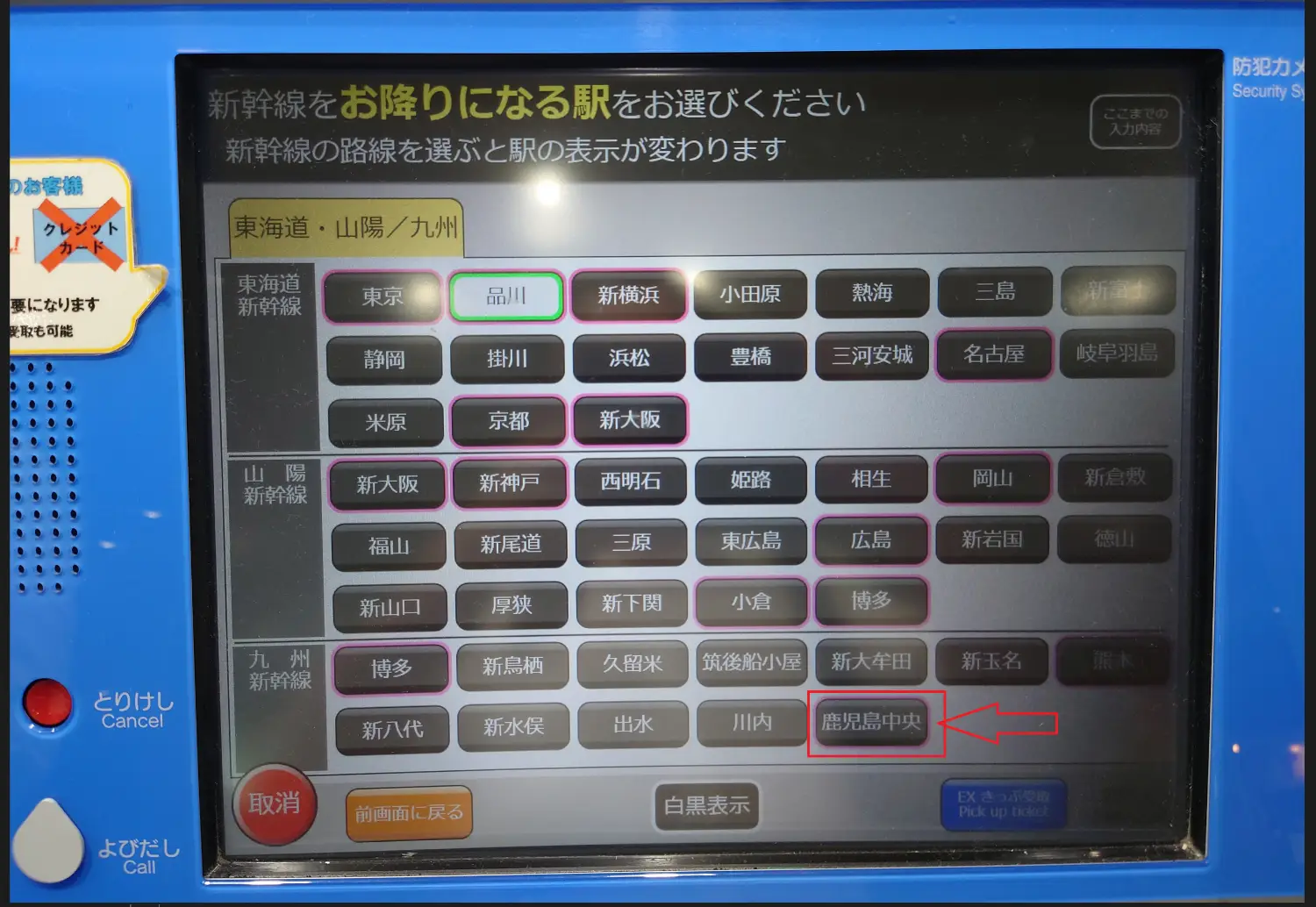 選擇乘車券最終到達站,如果不是新幹線車站,就選右邊,然後自己輸入車站