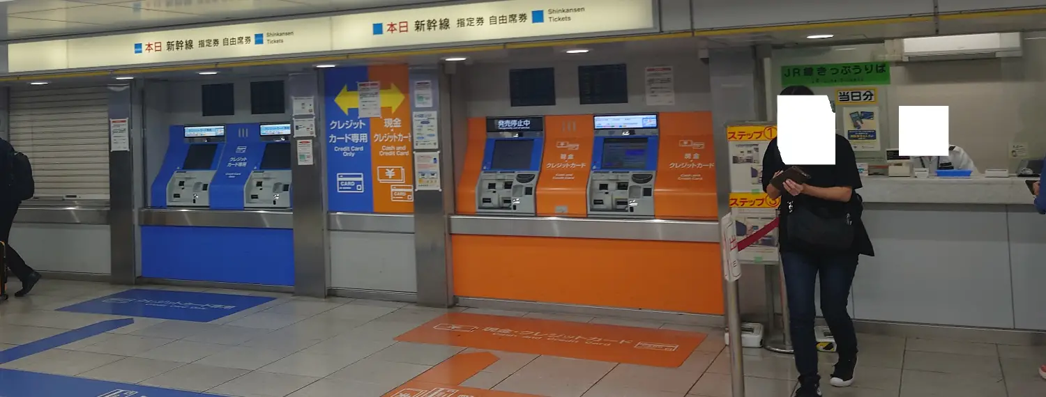 在新幹線轉乘口旁,那一排指定席券売機或人工窗口前,總是有人正在排隊買票。