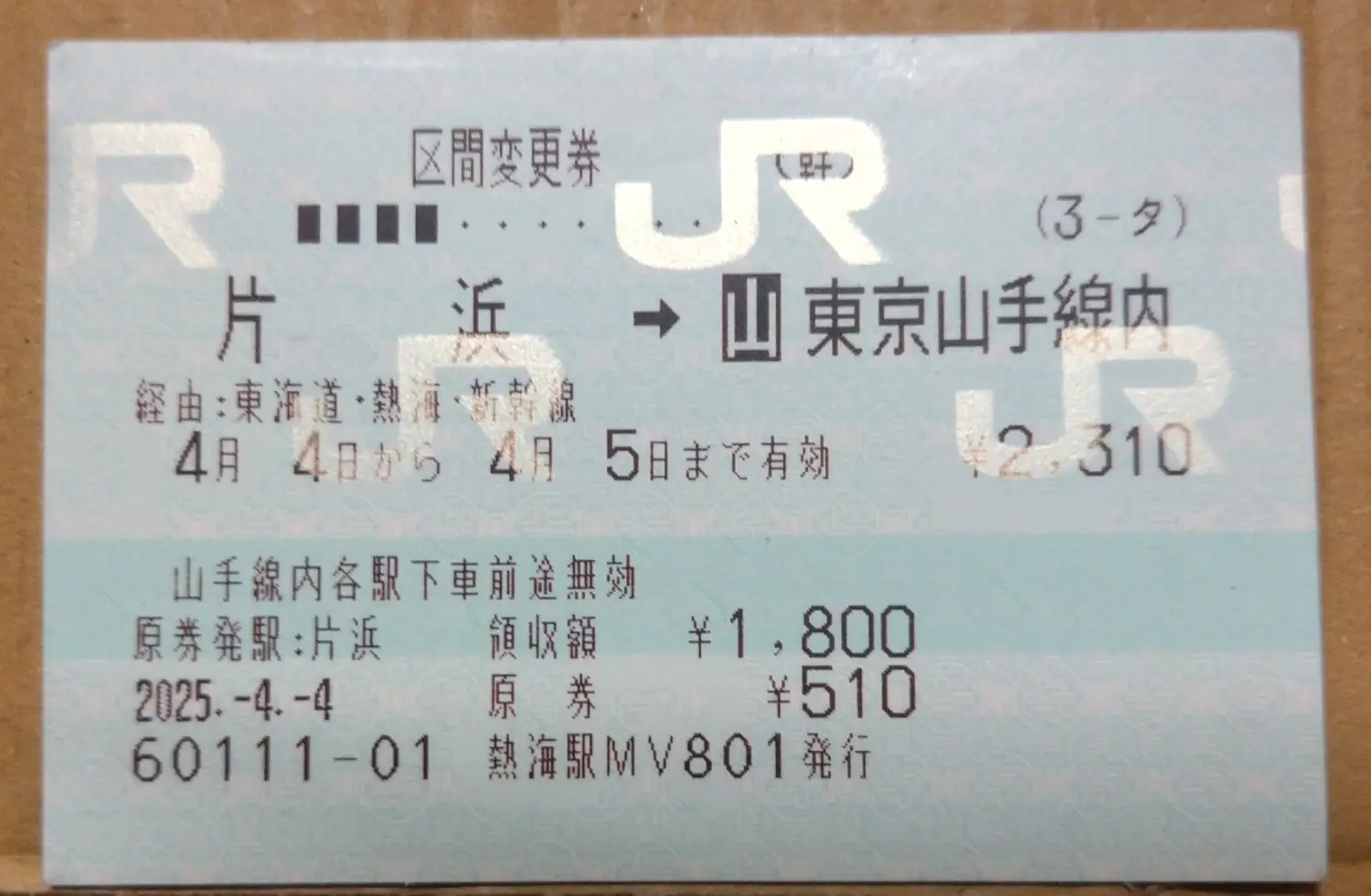 ●改發「板橋---東京---小田原---國府津」的區間變更券
