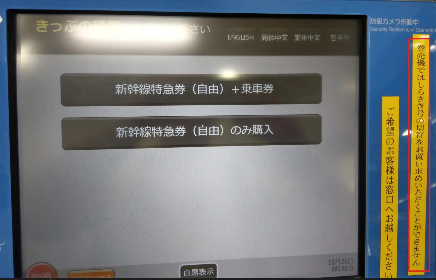 ●新幹線乘換口旁的指定席券売機,不一定支援在來線特急